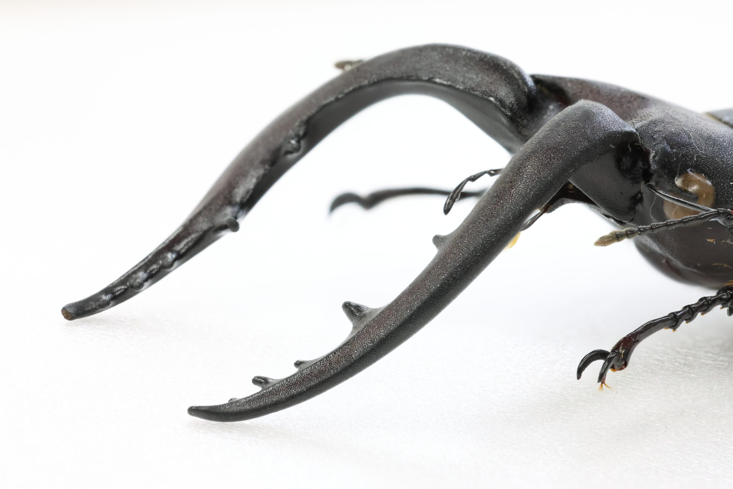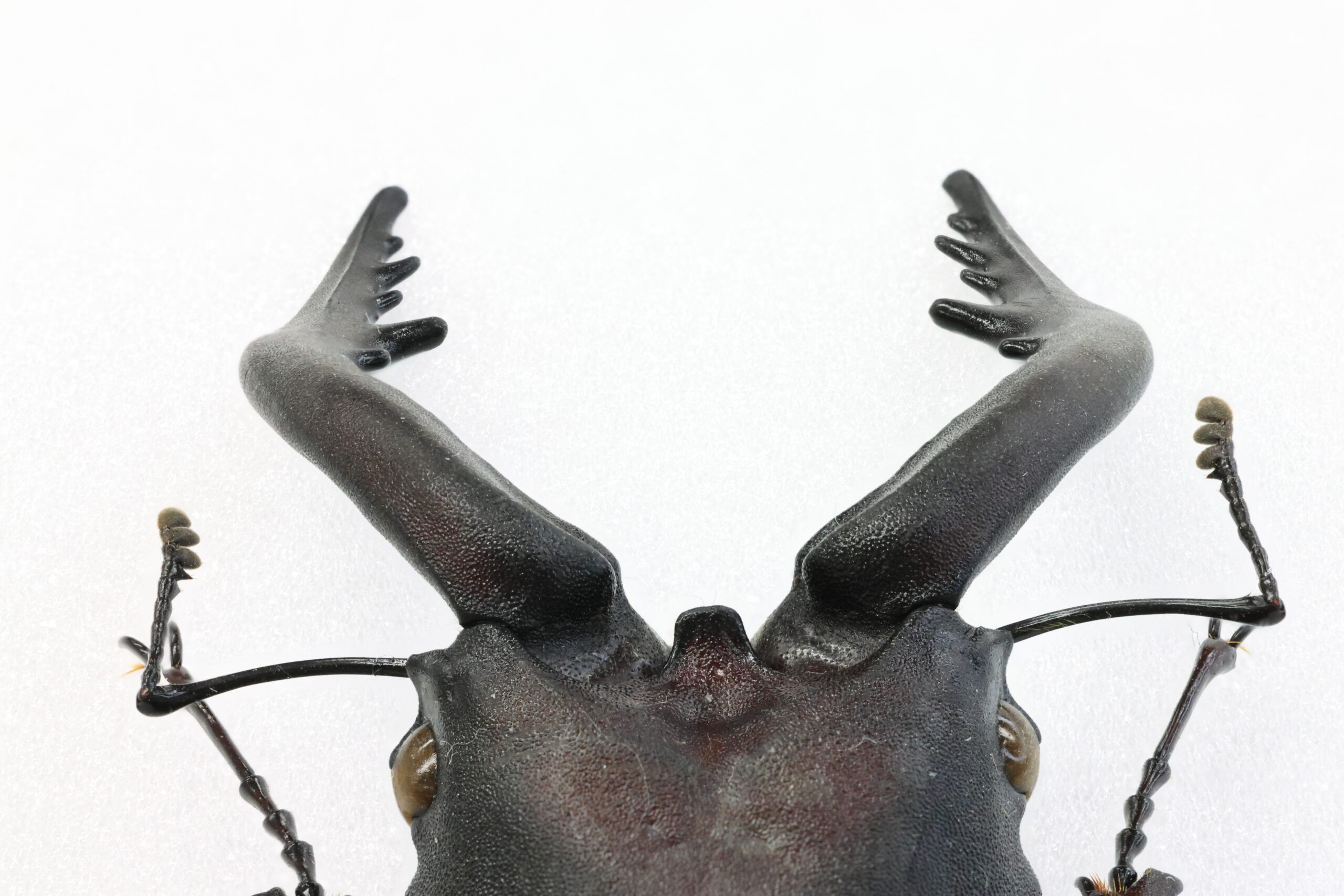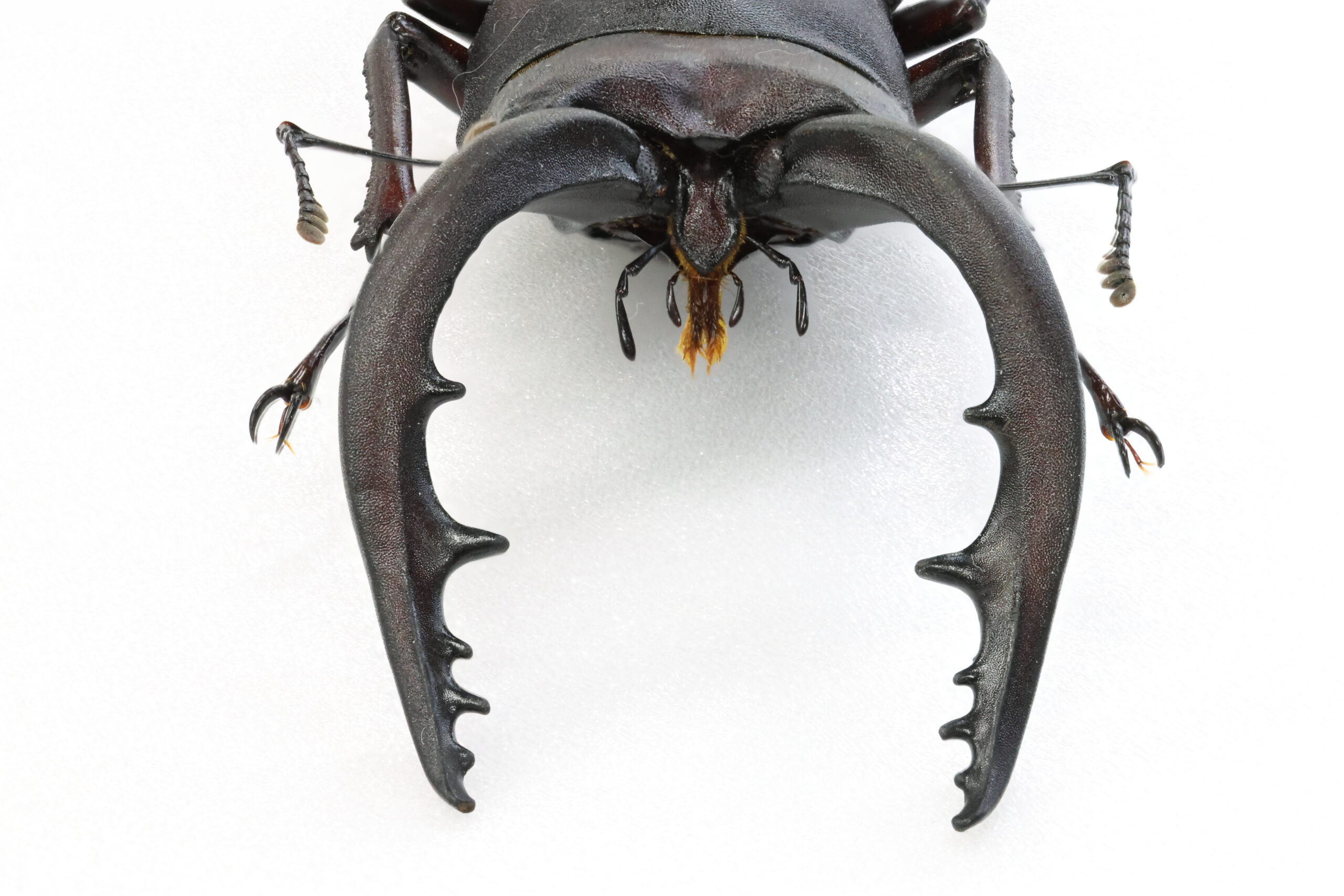 同じノコギリクワガタでも、地域によって形に違いがあって興味深いです。特に大アゴの形状が多様で面白い。大型個体になればなるほど、第一内歯が前方へ!