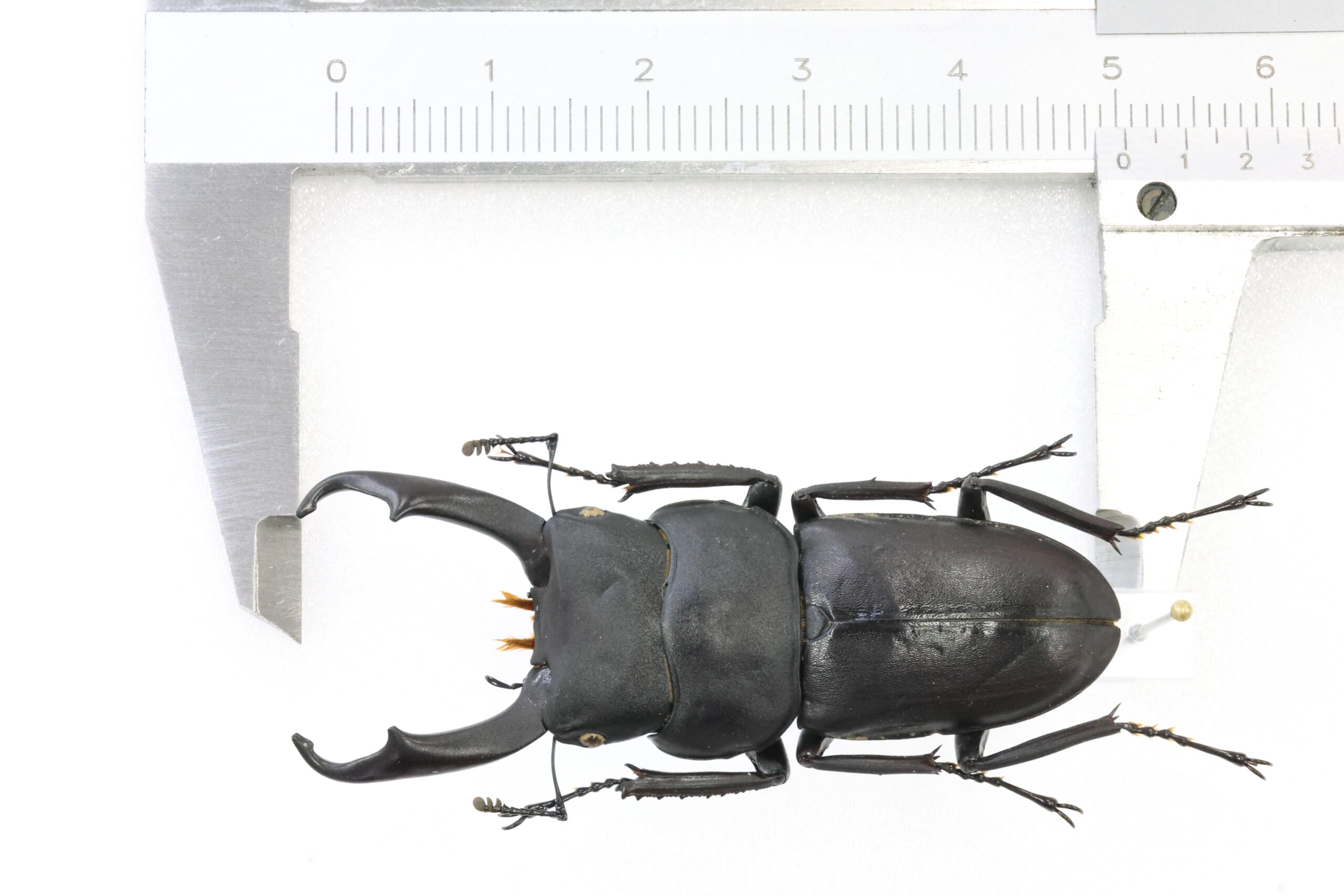 このコクワガタはマイマイカブリ採集の副産物です。ヤナギの大きな樹洞に溜まったフレーク状の木くずを掘っていたら転がり出てきたそうです。狙っていたマイマイカブリではなかったのですが、こんな大きなコクワガタが出てきたら嬉しいですね。しかも、滅多に採れない50ミリ越えです。