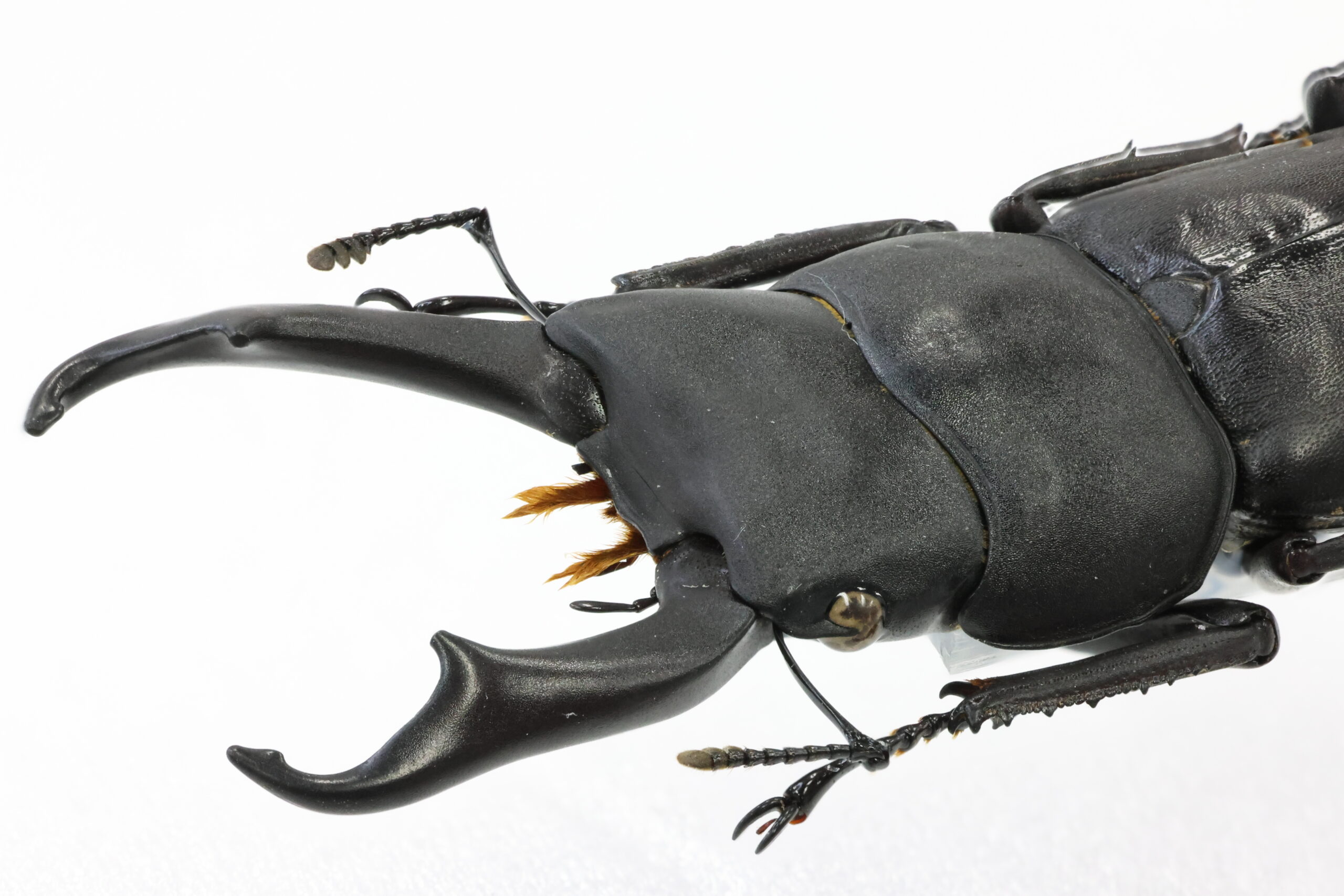 大アゴ先は擦れて丸くなり、右の小顎鬚(しょうがくしゅ)が切れてしまっています。昨年から生き抜いてきた証です。格好良い!私はピカピカの完全体より、こういう個体に魅力を感じます。