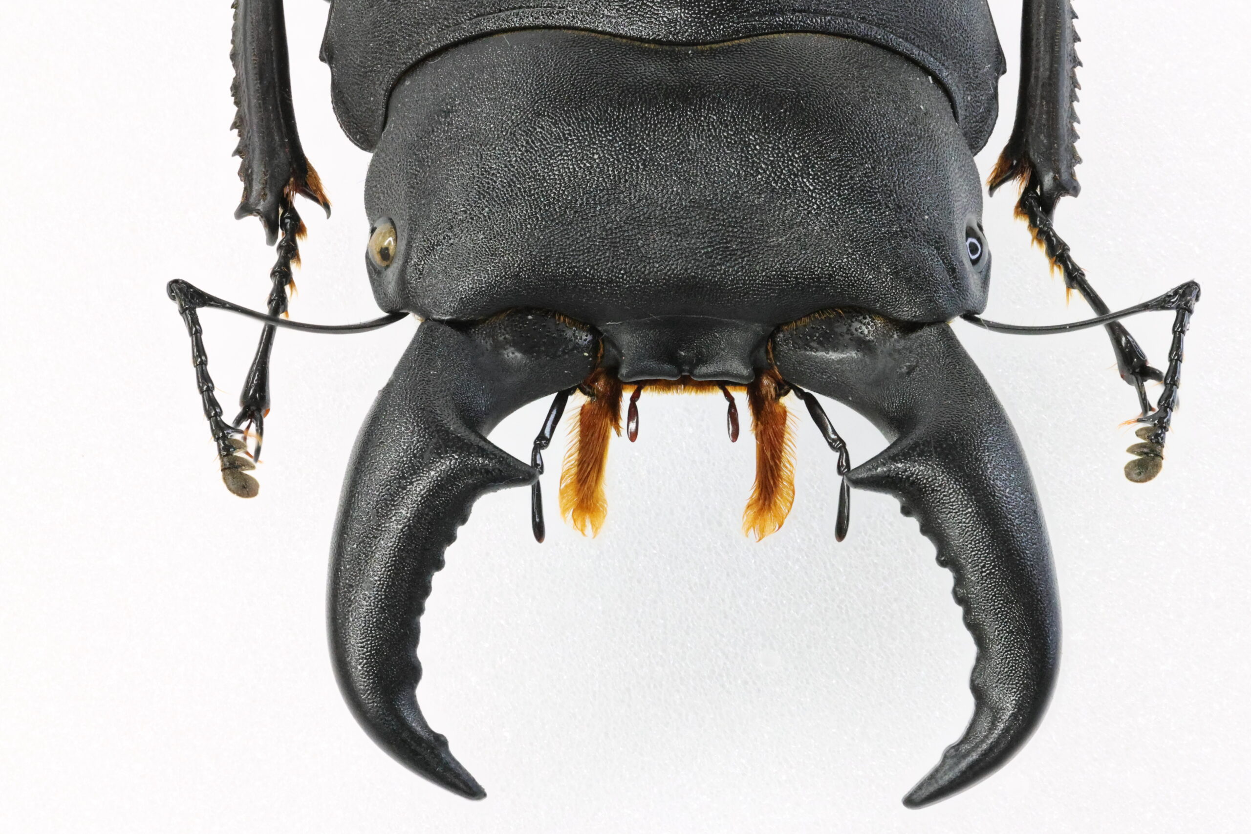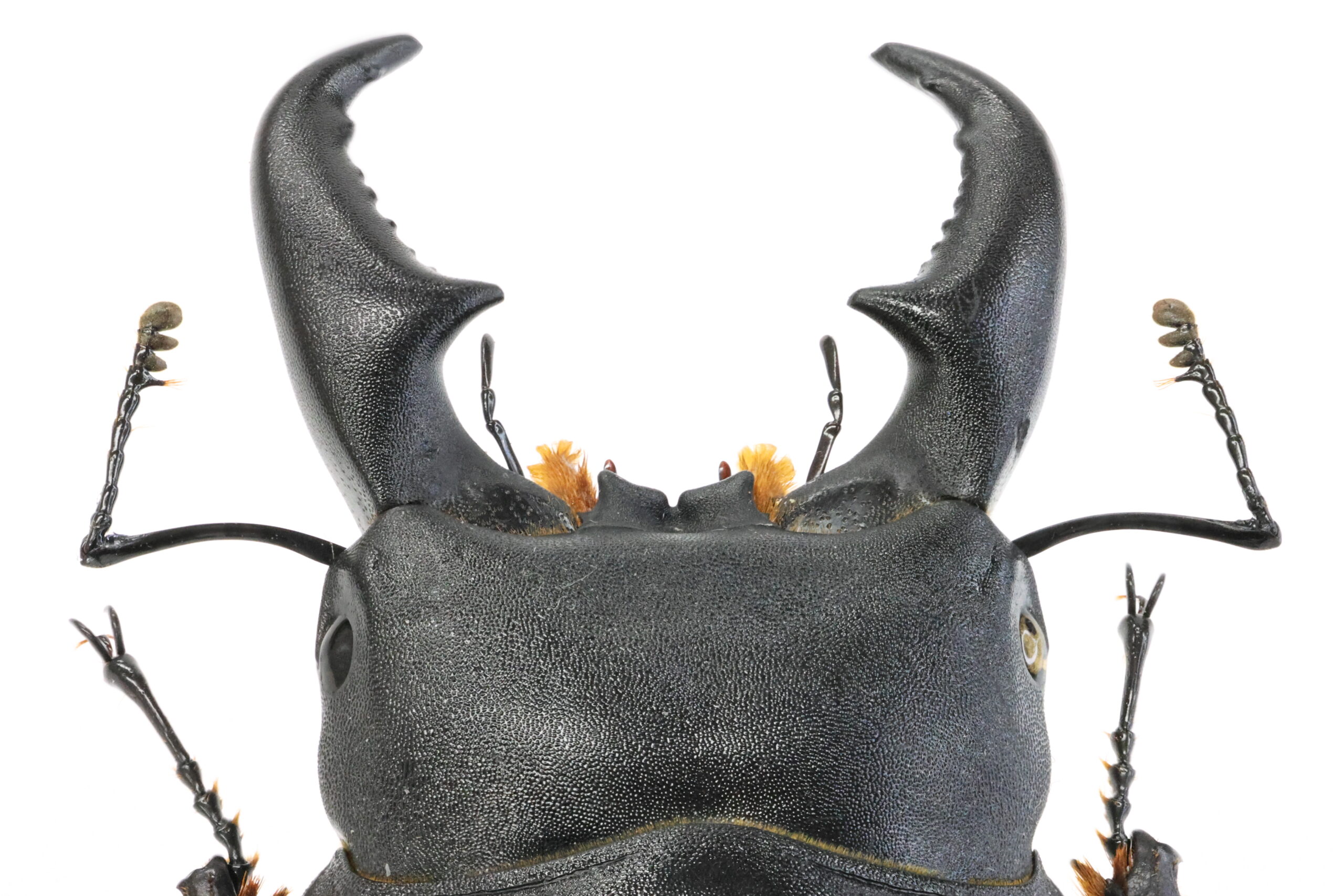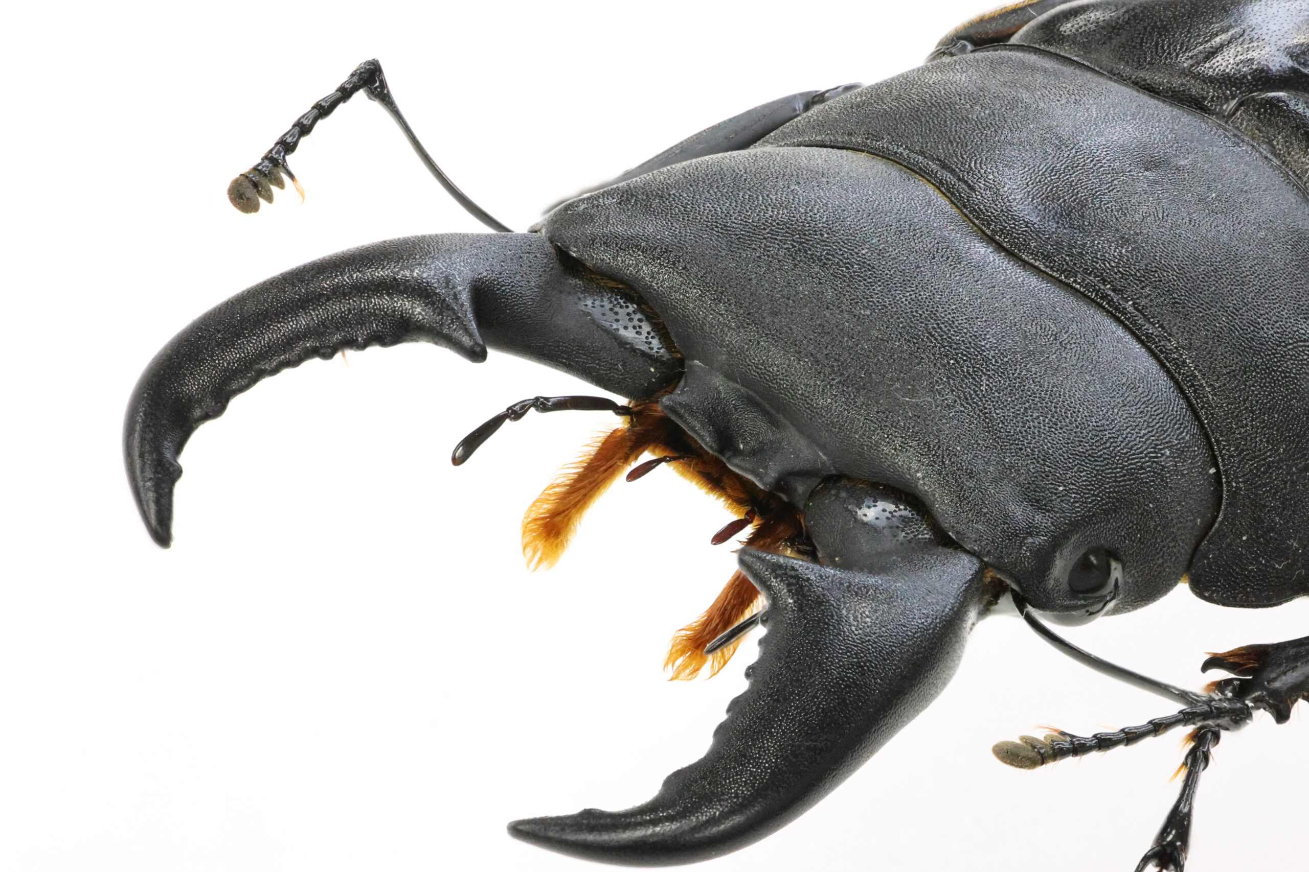 沖縄亜種も、この個体を見る限り、同じように感じます。65ミリクラスになるとボディも太いですが、大アゴも太くて短い!アゴ先が摩耗し、左上翅の傷も野武士のような渋さがあって、なんと格好良いこと。大アゴの太さで知られたタカラヒラタ(ヒラタクワガタ宝島亜種)のようにも見えてきます。沖縄亜種の野外最大個体は7センチを超えてきます。7センチってお化け個体ですね。