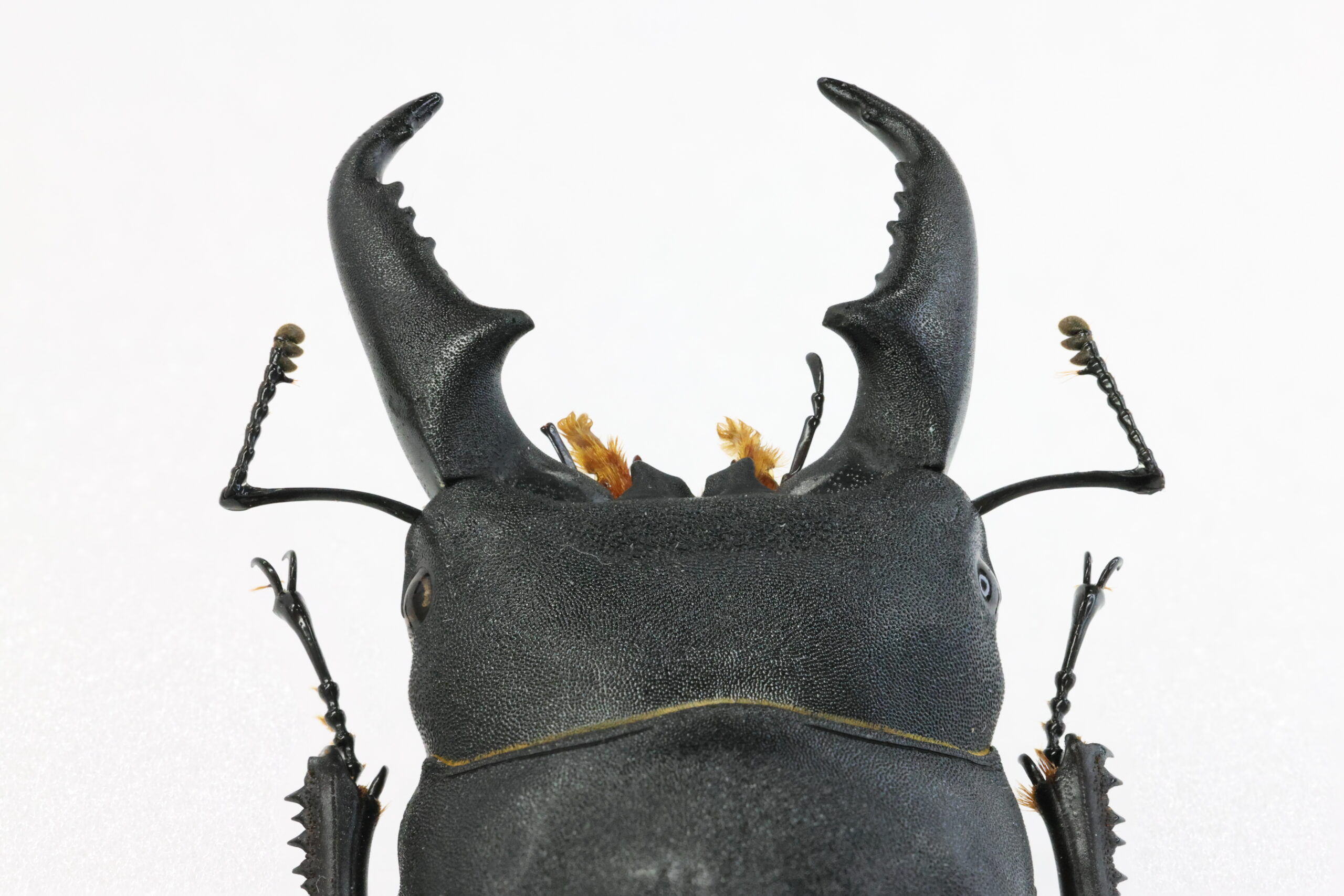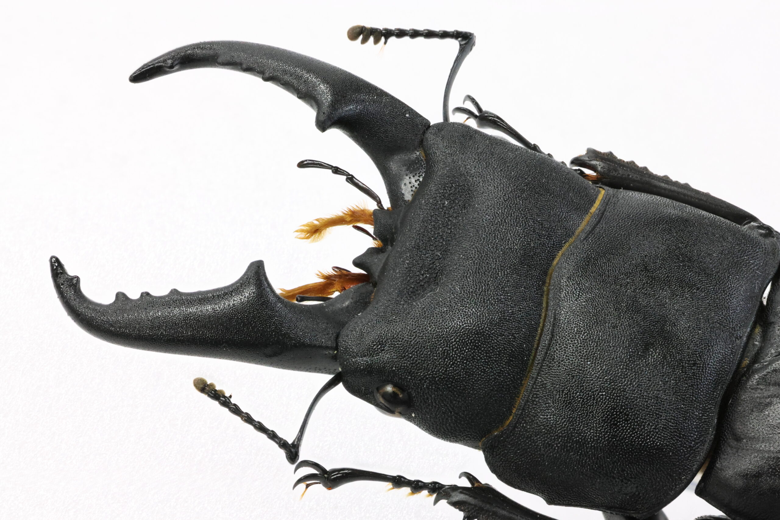Pさんの採集フィールドである上牧町と五條市…この場所のヒラタクワガタは、このように大アゴが太くて短めの個体が多い。このフォルムの遺伝子が、この場所で長く受け継がれているのでしょう。左の小顎髭(しょうがくしゅ)が切れていますね。何があったのだろう?何かに噛みつかれたのだろうか??個体の傷は、その個体の生きてきた歴史が垣間見えて良いなぁ~。