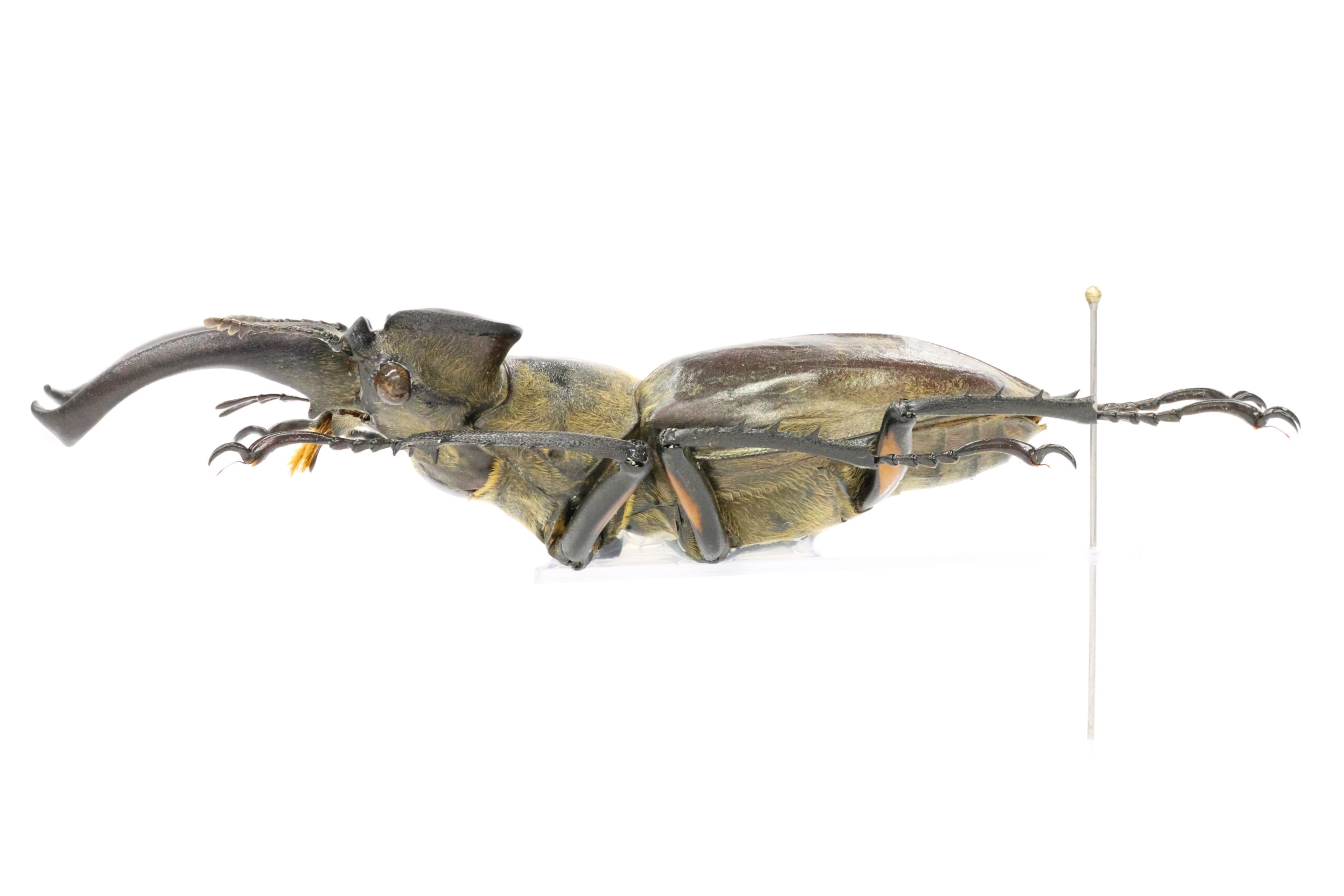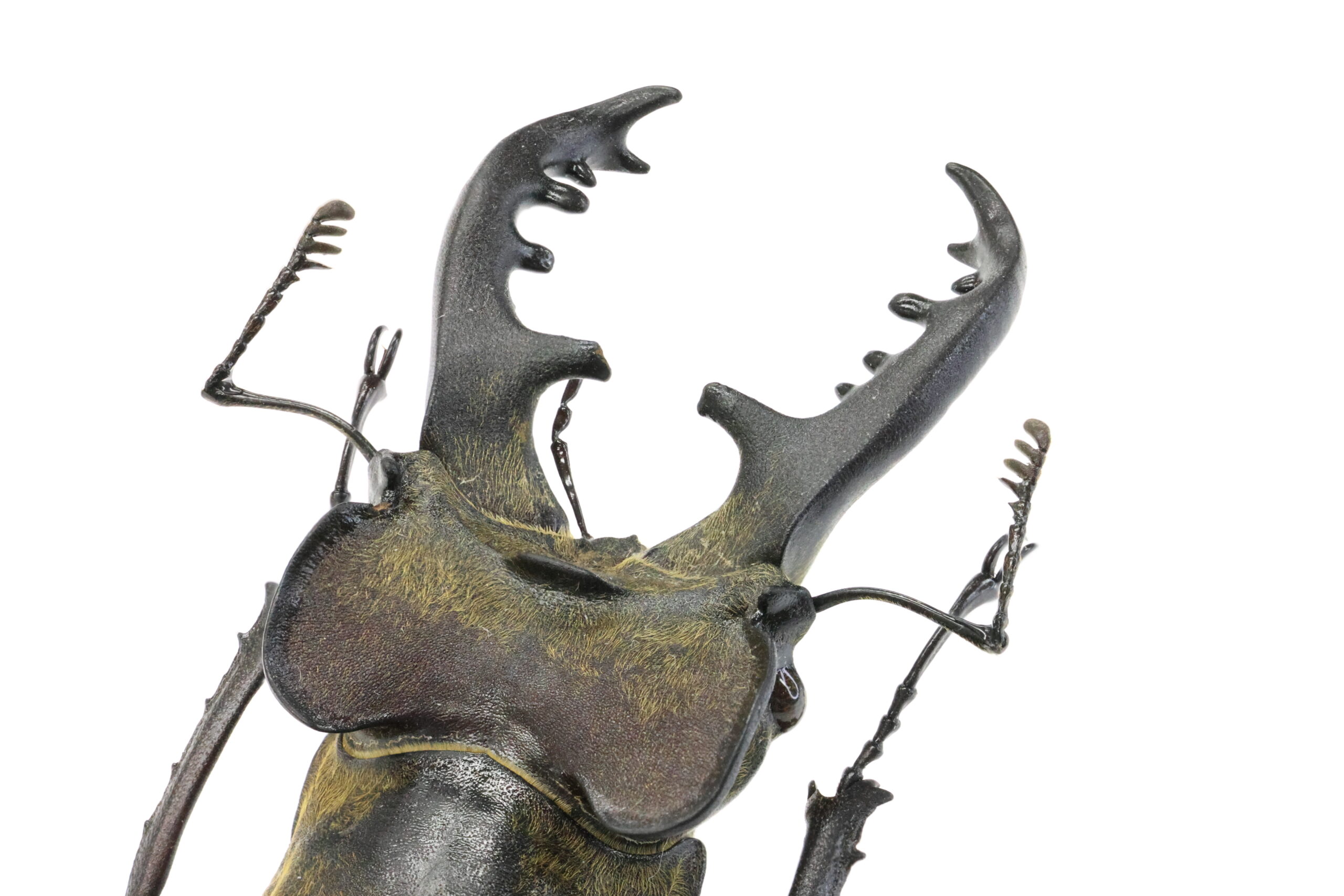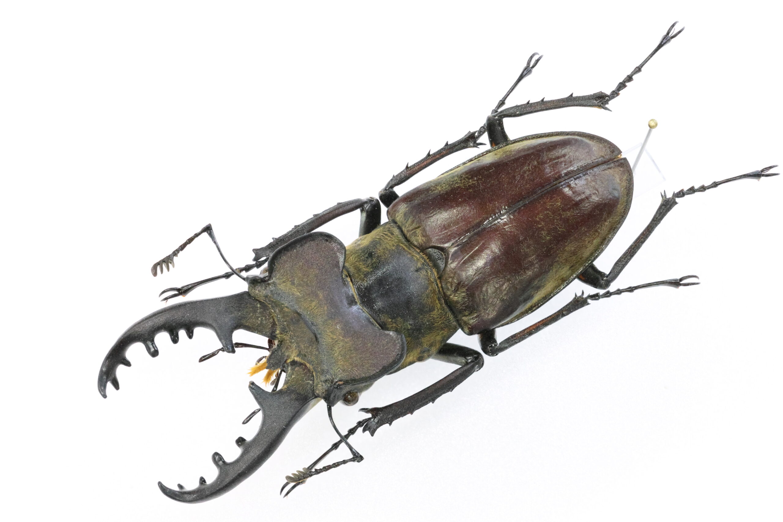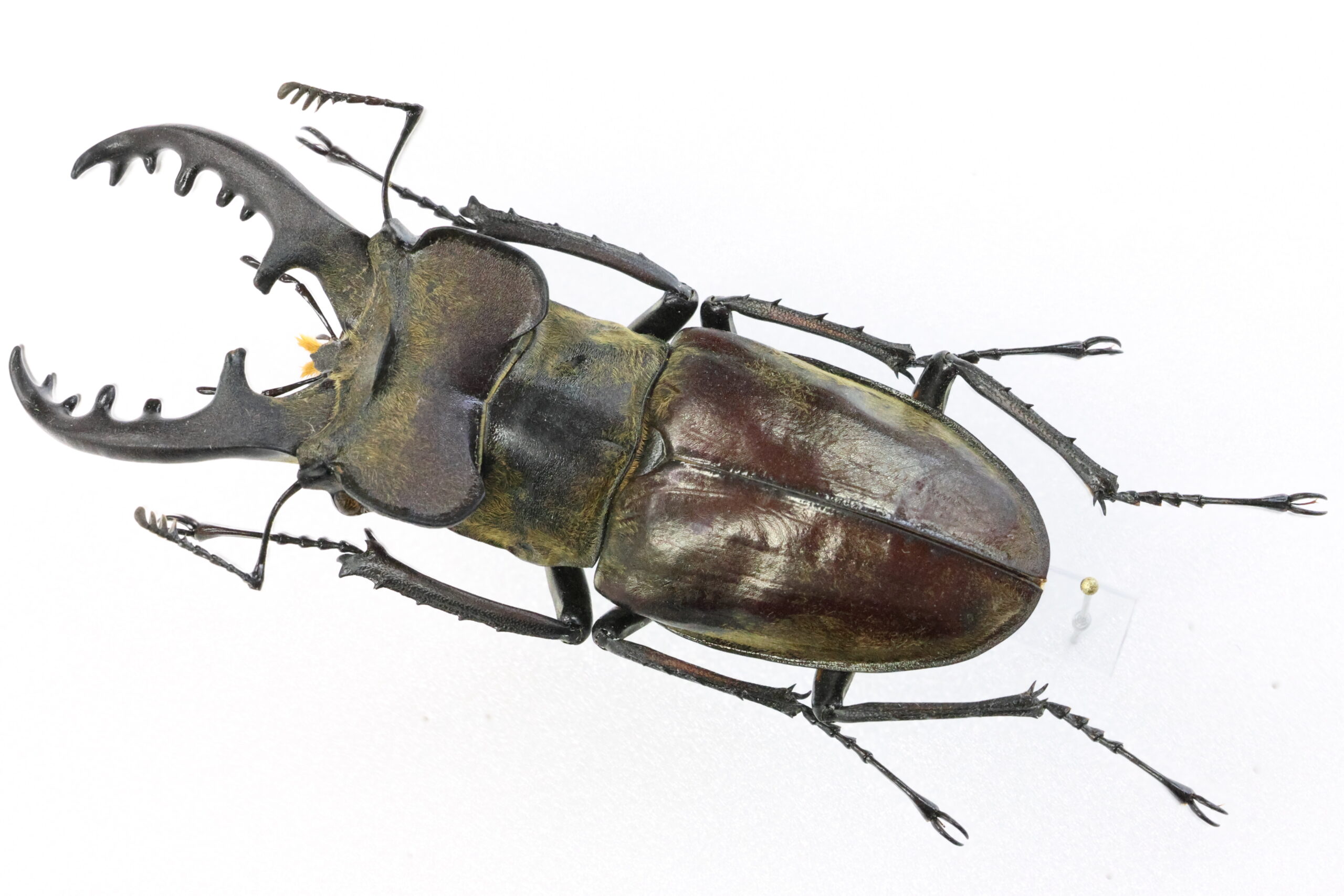 北海道南部(道南)はミヤマクワガタの大型産地として知られています。昔は採れるミヤマのほとんどはエゾ型だったそうですが、ここ10年ほど第一内歯がド~ンと突き出るフジ型個体が見られるようになってきた。これは完全なフジ型です。採集者の菅原さん曰く、このような典型的なフジ型個体の採集数は、まだまだ少なくワンシーズンで数頭採集できるかどうか? 20年前は殆ど見られなかった歯型ですので、Climate Change(気候変動)の影響を間違いなく受けていると思われます。