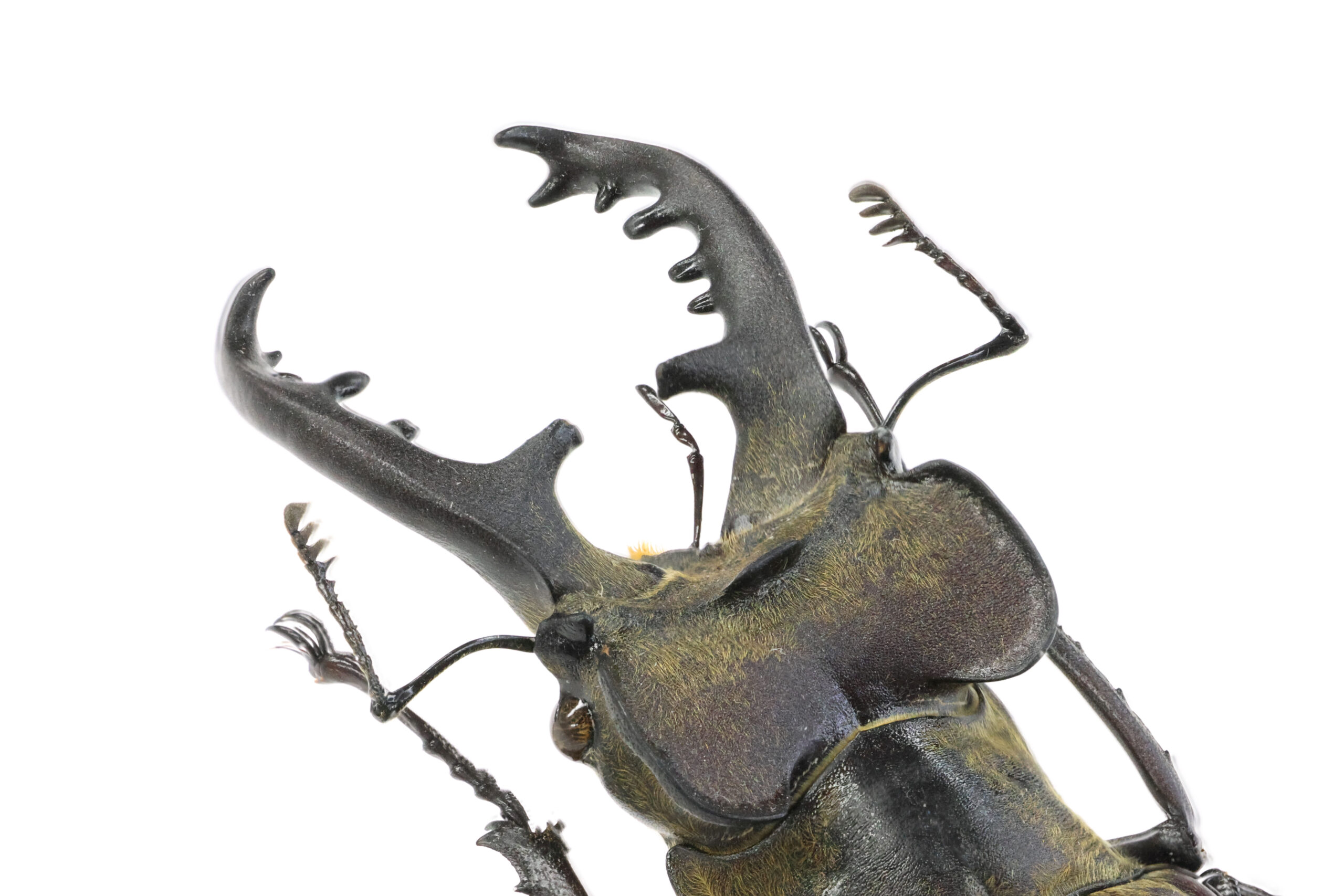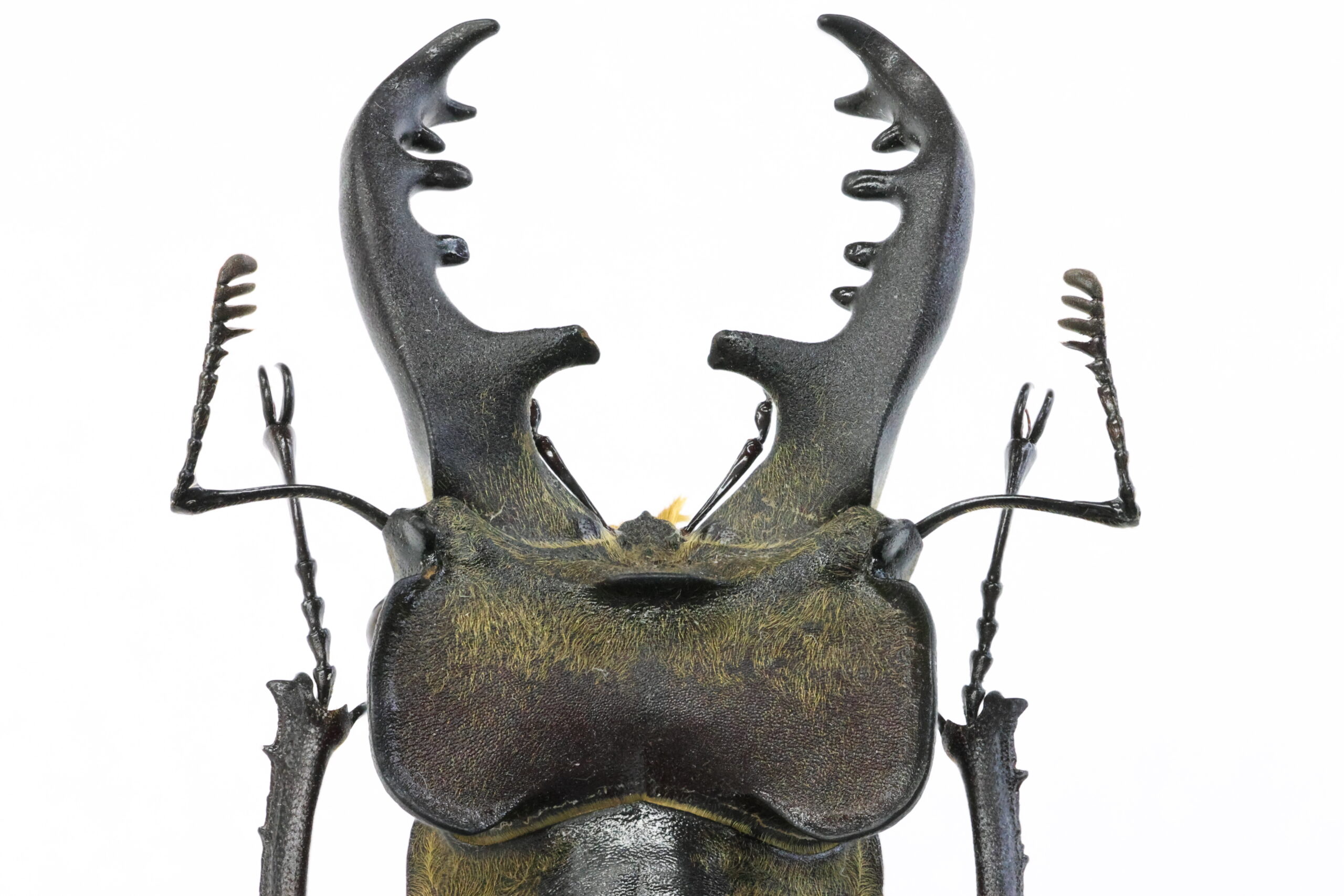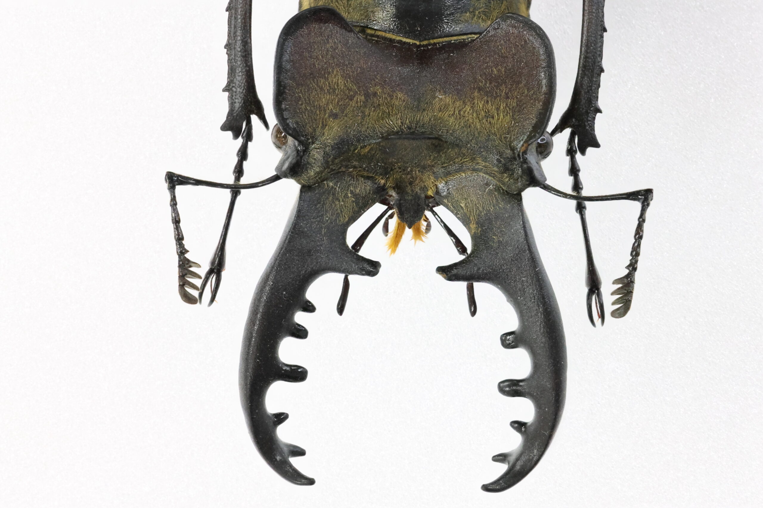 良く見ると、左大アゴの第一内歯の先が欠けています。同サイズの特大ミヤマと戦って欠けたのだろうか??私はそんな想像を巡らすのが好きです。