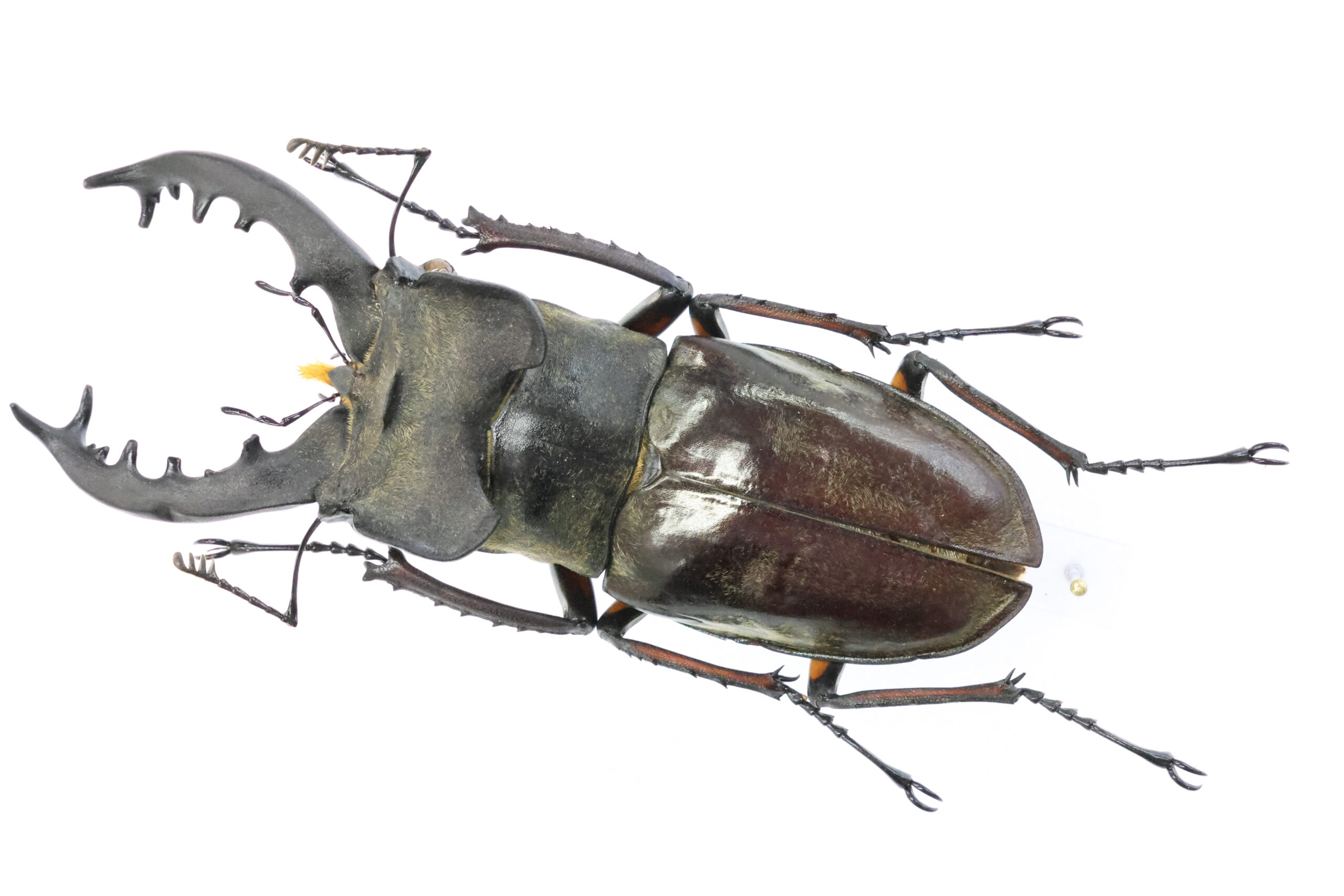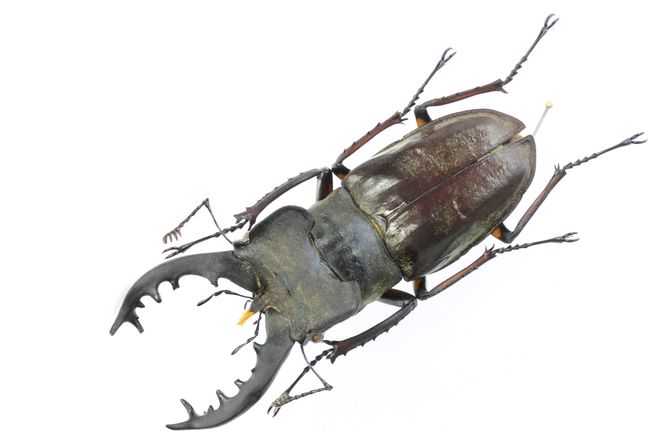 これぞ蝦夷型というミヤマクワガタです。75ミリを超える特大クラスに蝦夷型は多くないように思います。幼虫時代に寒い場所(低温)で過ごすと大アゴの形状がエゾ型になる。