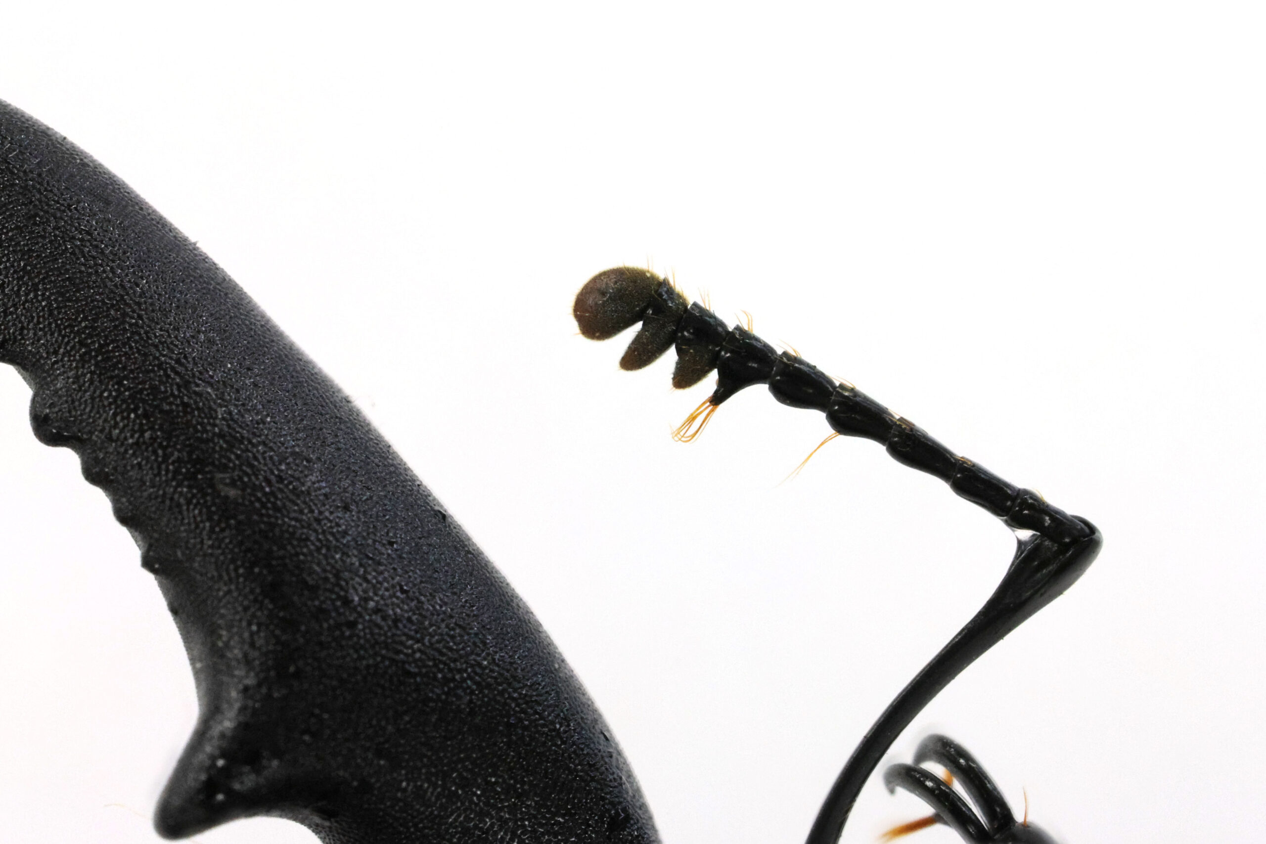 ヒラタクワガタの触角には、美しい毛が生えているんです。まるでブラシのような!