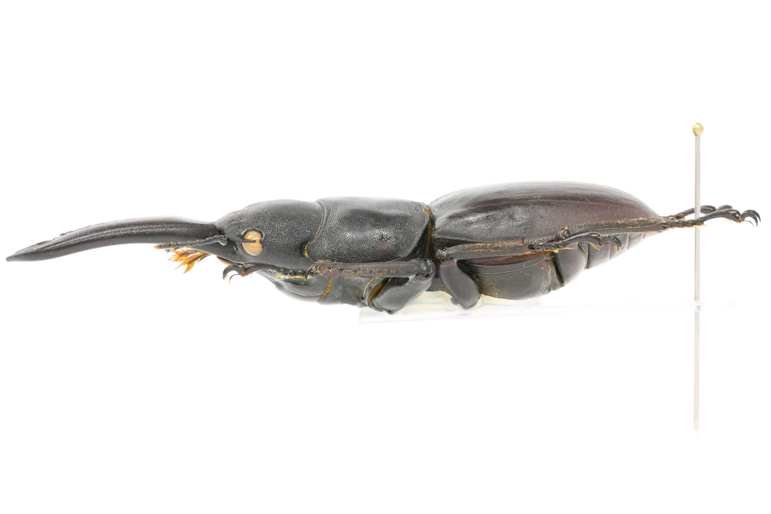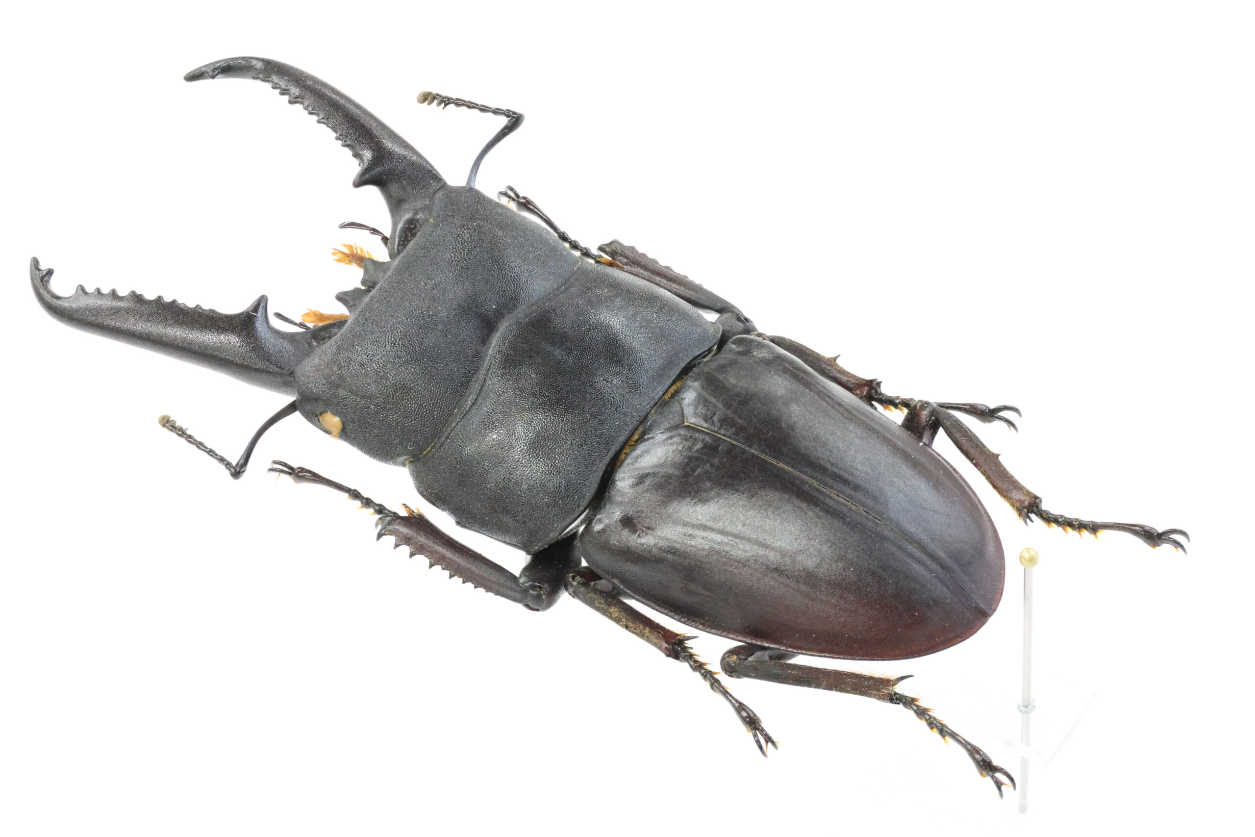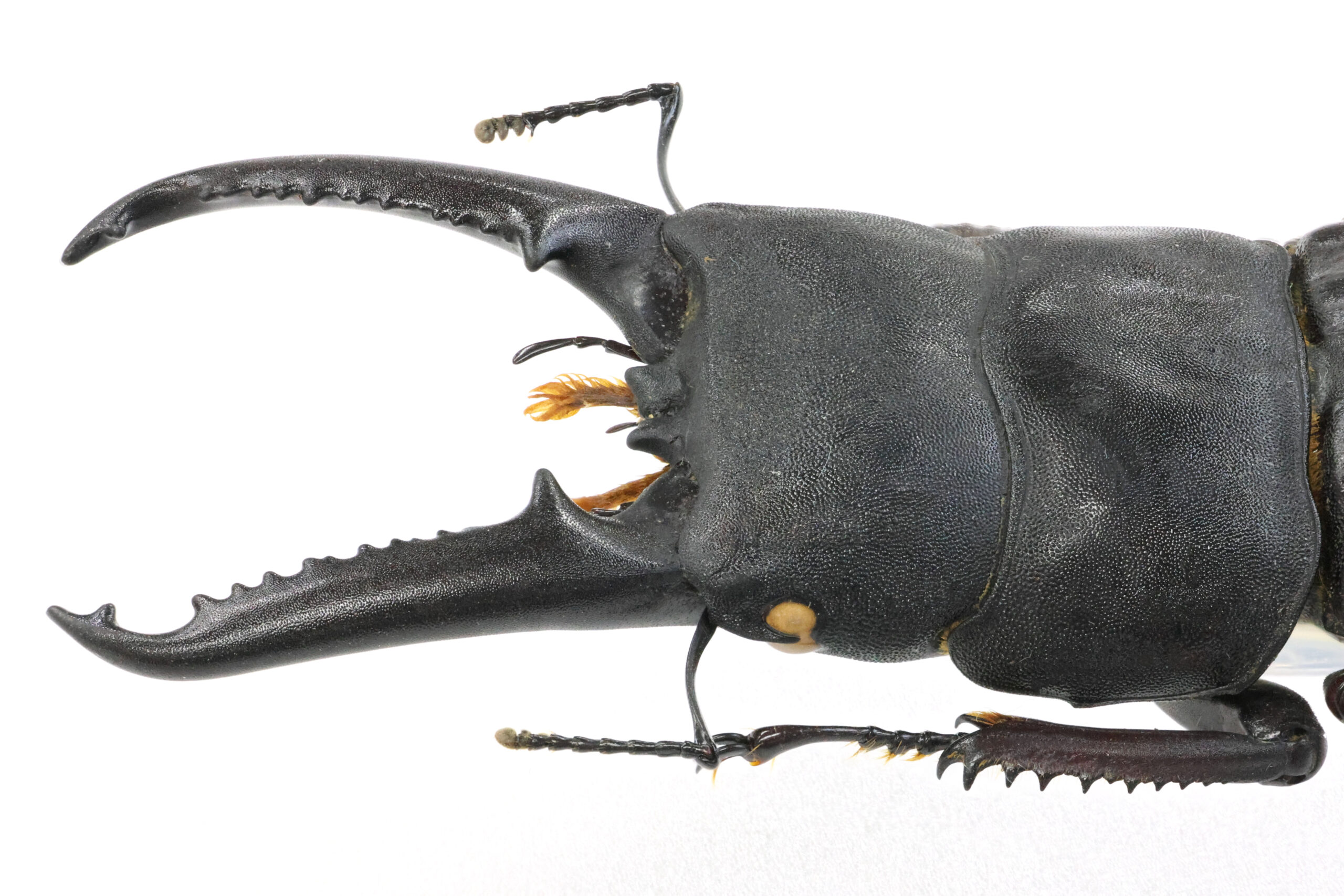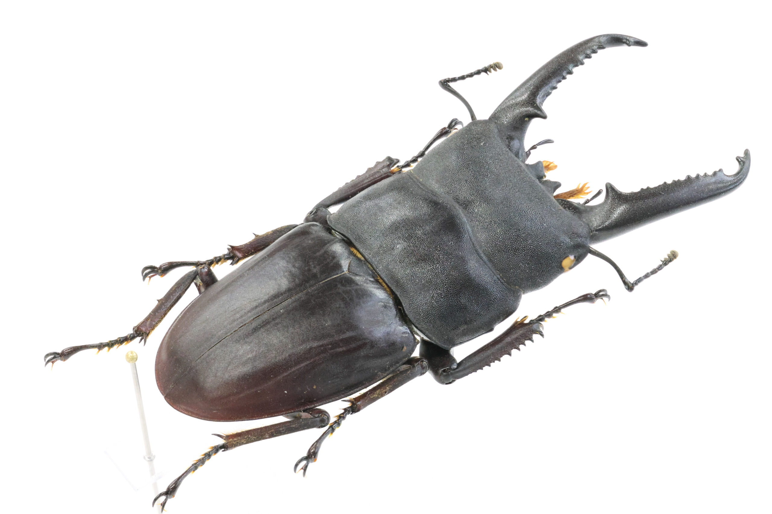 日本最大体長のクワガタとして、このツシマヒラタクワガタが君臨しています。現時点でのGuinnessレコード個体(BE-KUWA認定)は、なんと84ミリでございます!