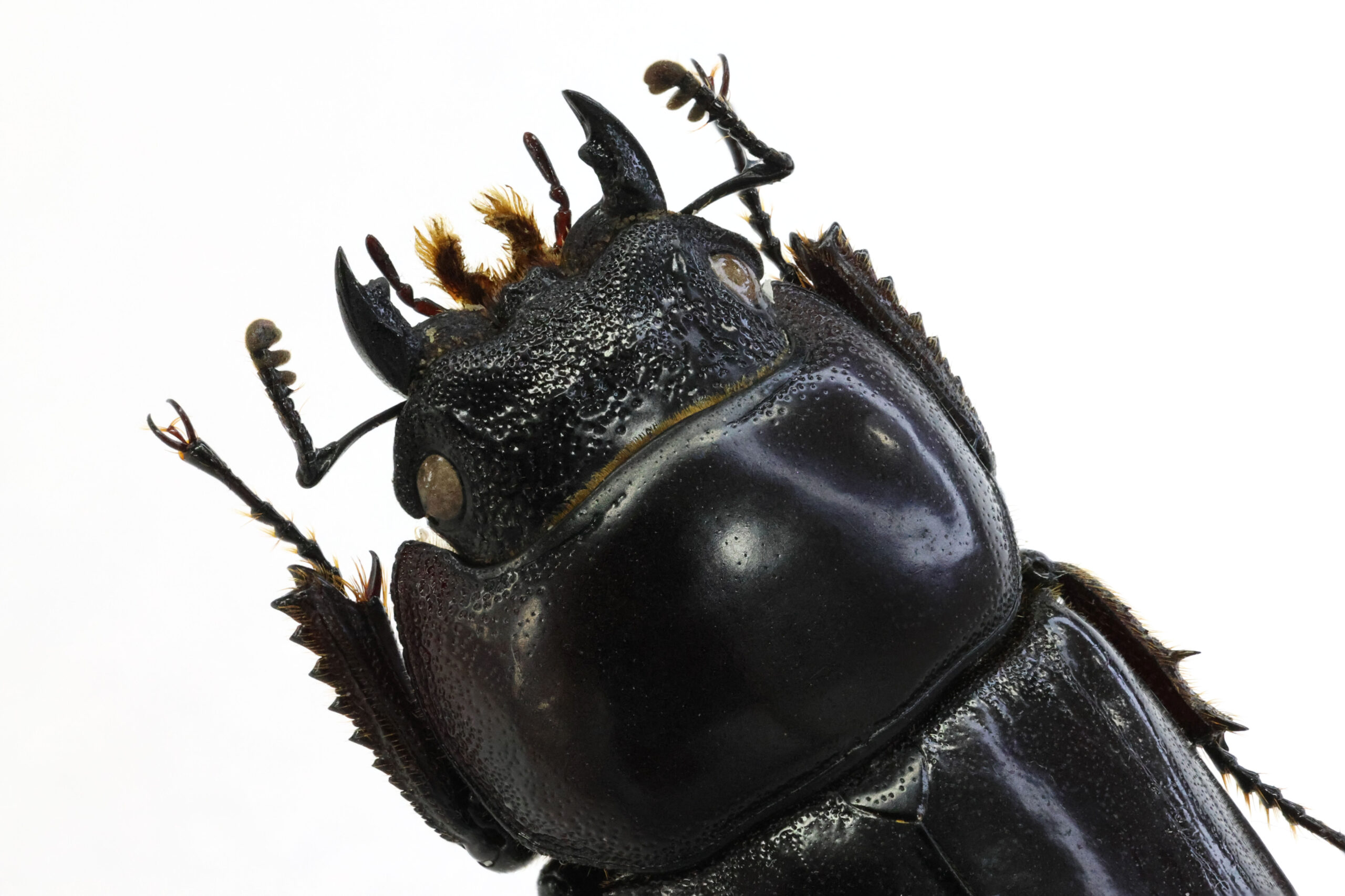 ヒラタクワガタのメスは頭部が大きめで、ピカピカしていて可愛らしい。うちのカミさんは、これがゴキブリに見えるらしい…