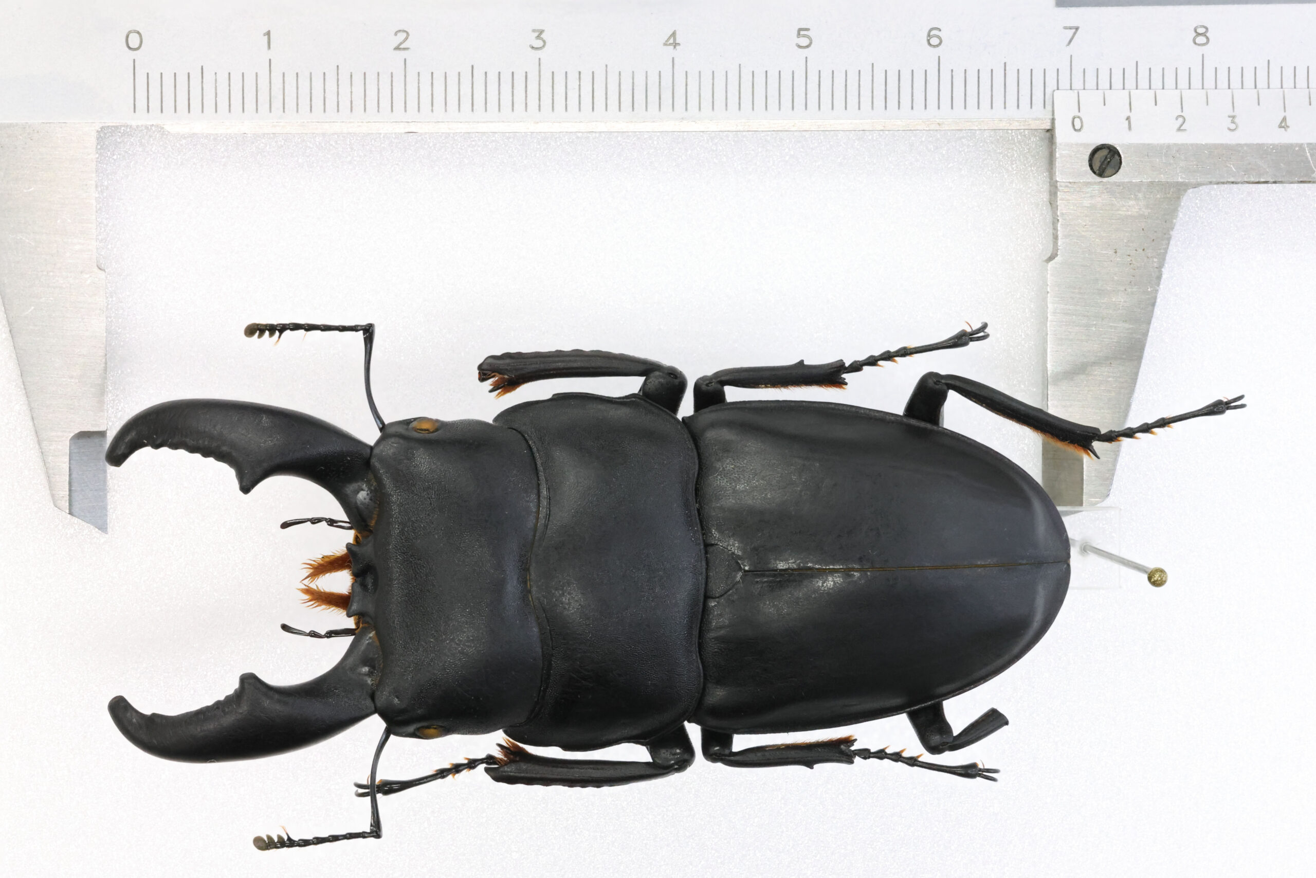 標本を良く見て下さい。この個体は前胸背板と上翅(腹部)が大きい。大アゴが短いこともあって、装甲をしっかり固めた重戦車のような迫力を感じます。40~50ミリが多く、60ミリになると少なくなります。Tさんの話ですと65ミリクラスは年に数頭ほどだそうです。そんな中、70ミリは滅多に採れない特大クラスです。これが完品だったら!と言う方も多いと思いますが、私は、このような個体に圧倒的に魅力を感じます。大自然の中で長く生きるのは本当に大変なのです。この個体がそれを証明してくれています。