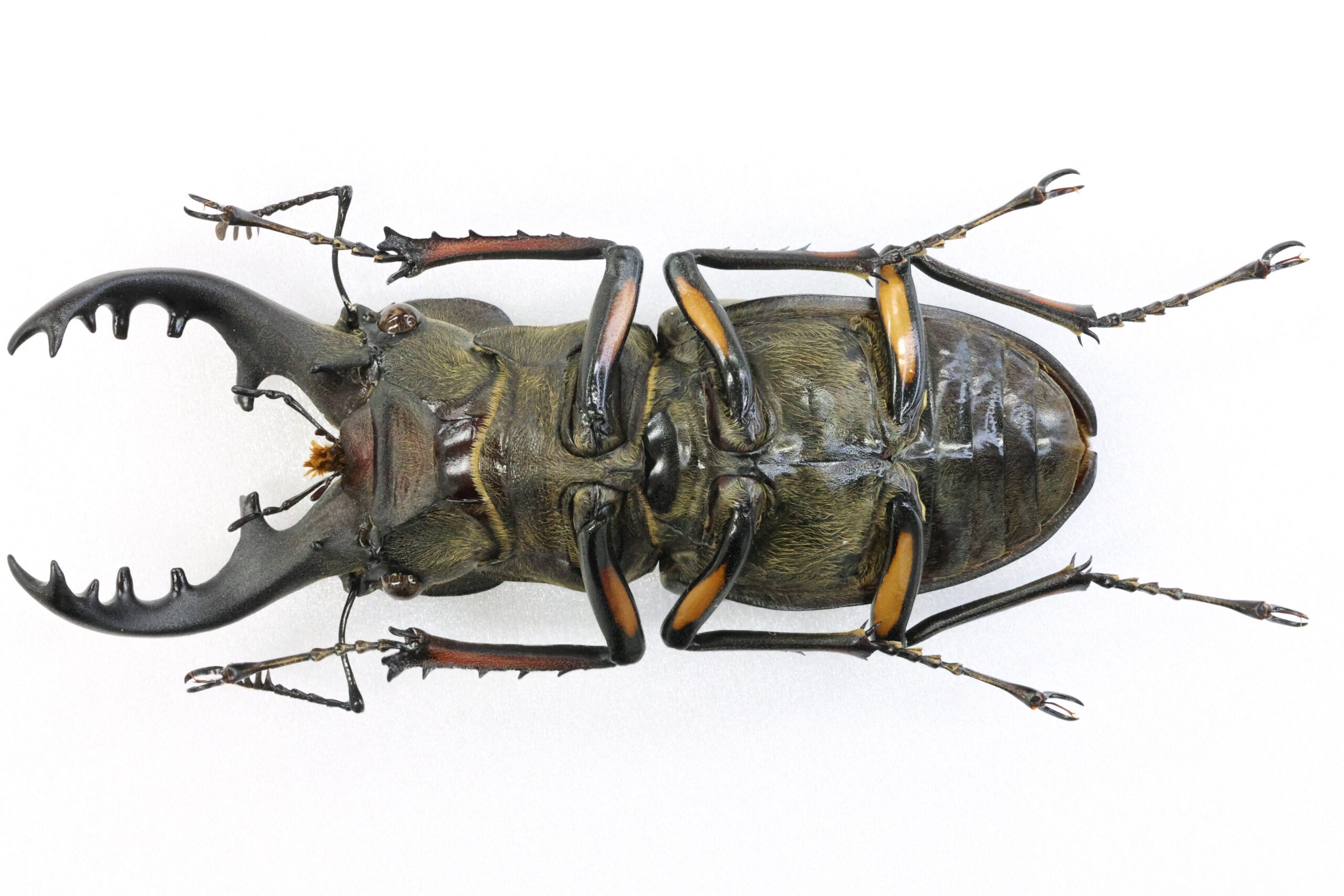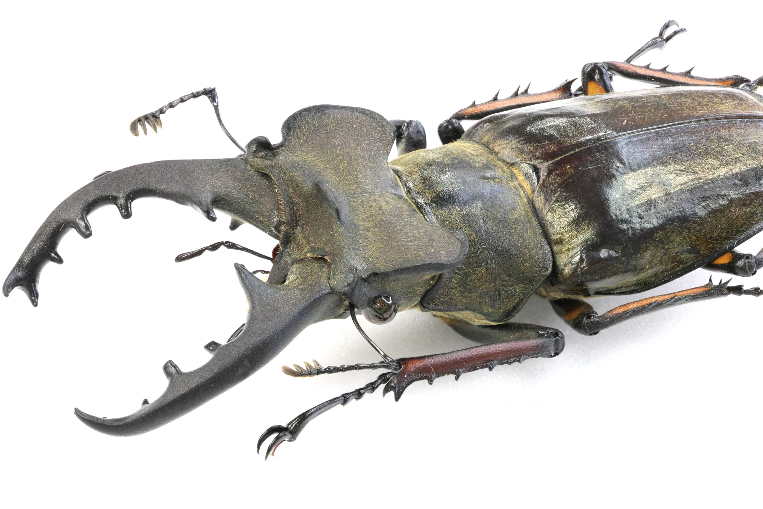 頭部の発達が良く太いところで20.5ミリほどあります。第一内歯が太くしっかりと突き出た立派なフジ型です。足のオレンジ色の発色も良く美しい個体です。