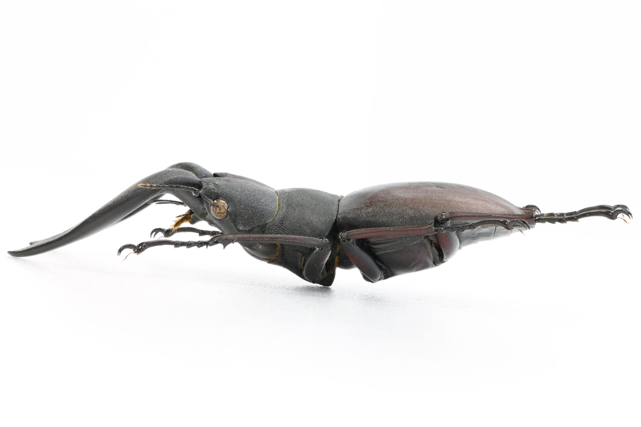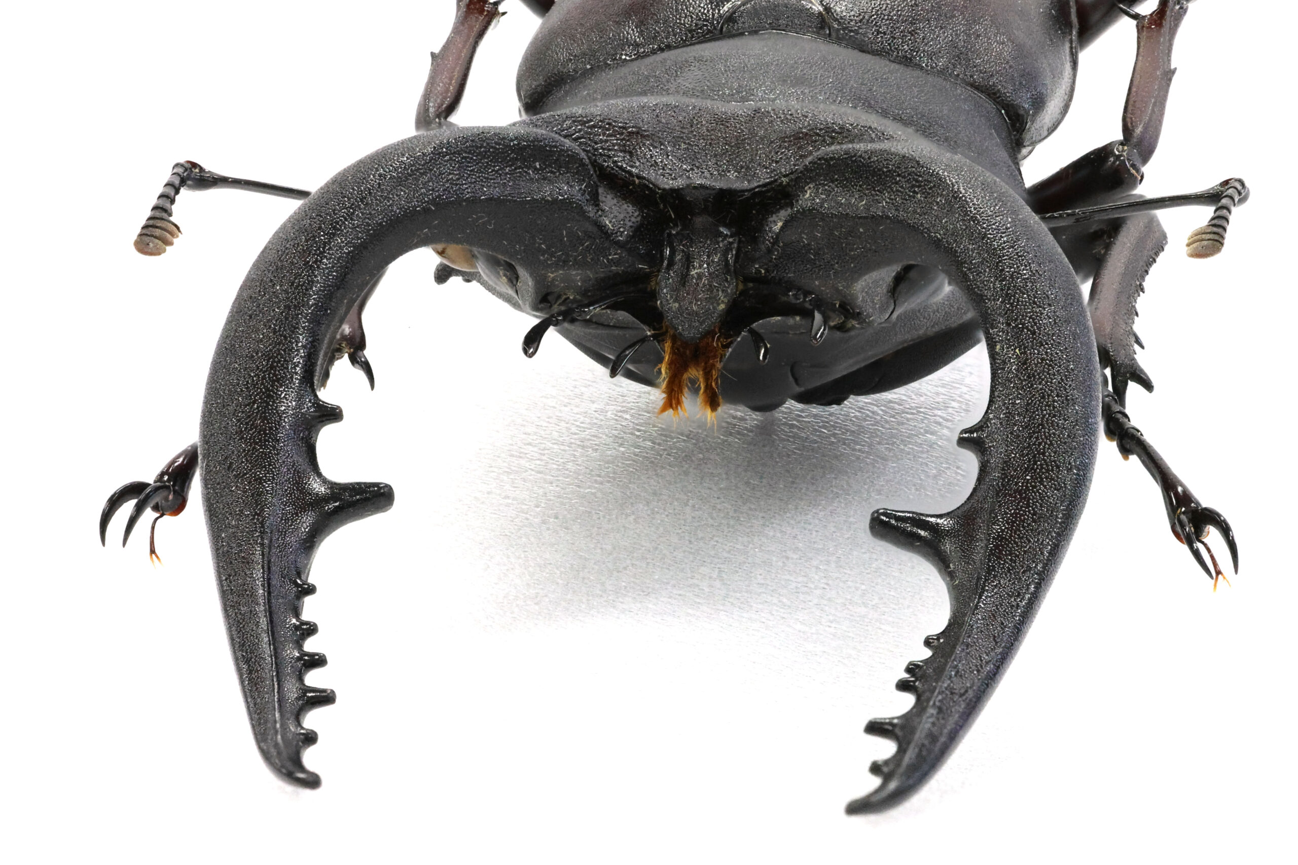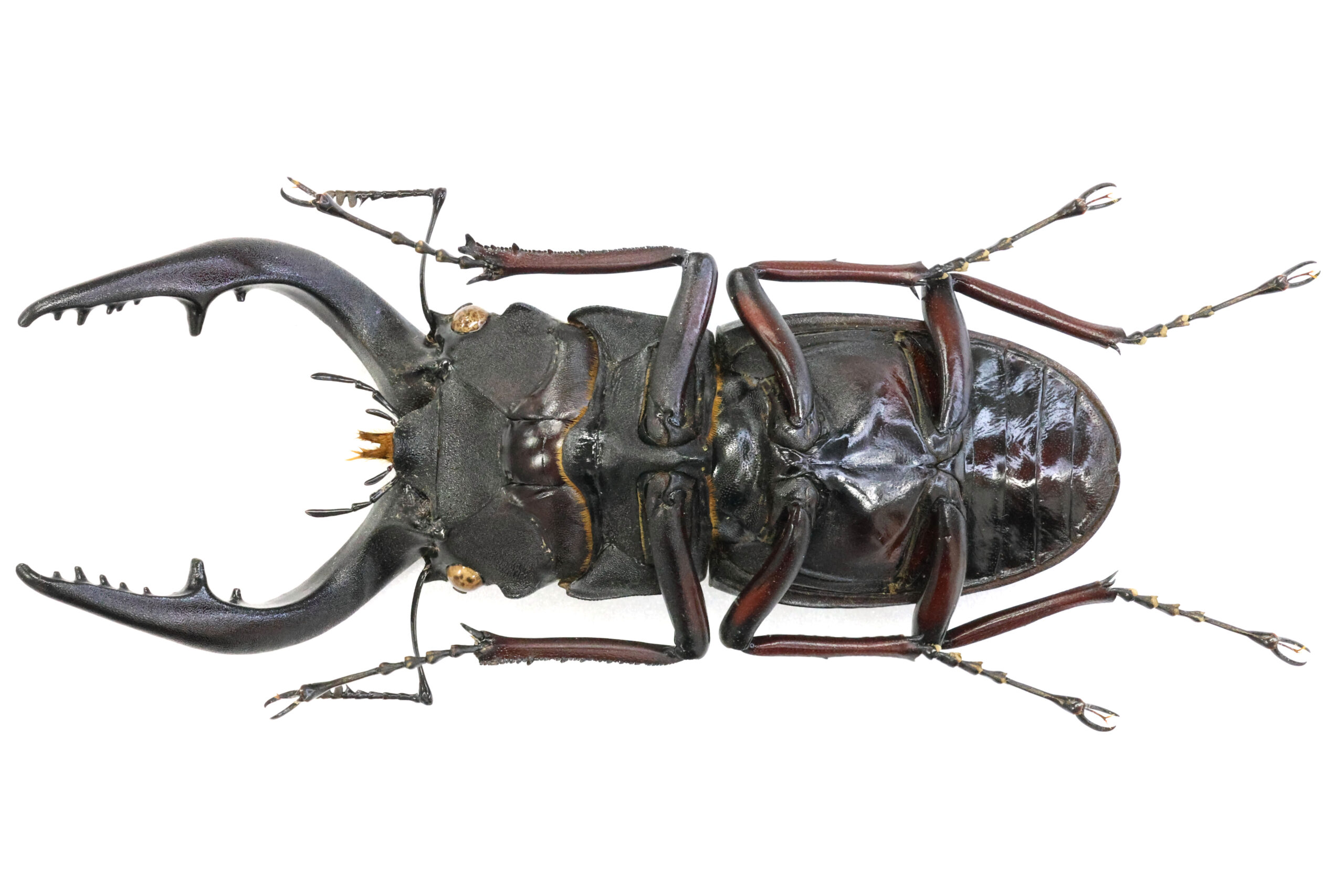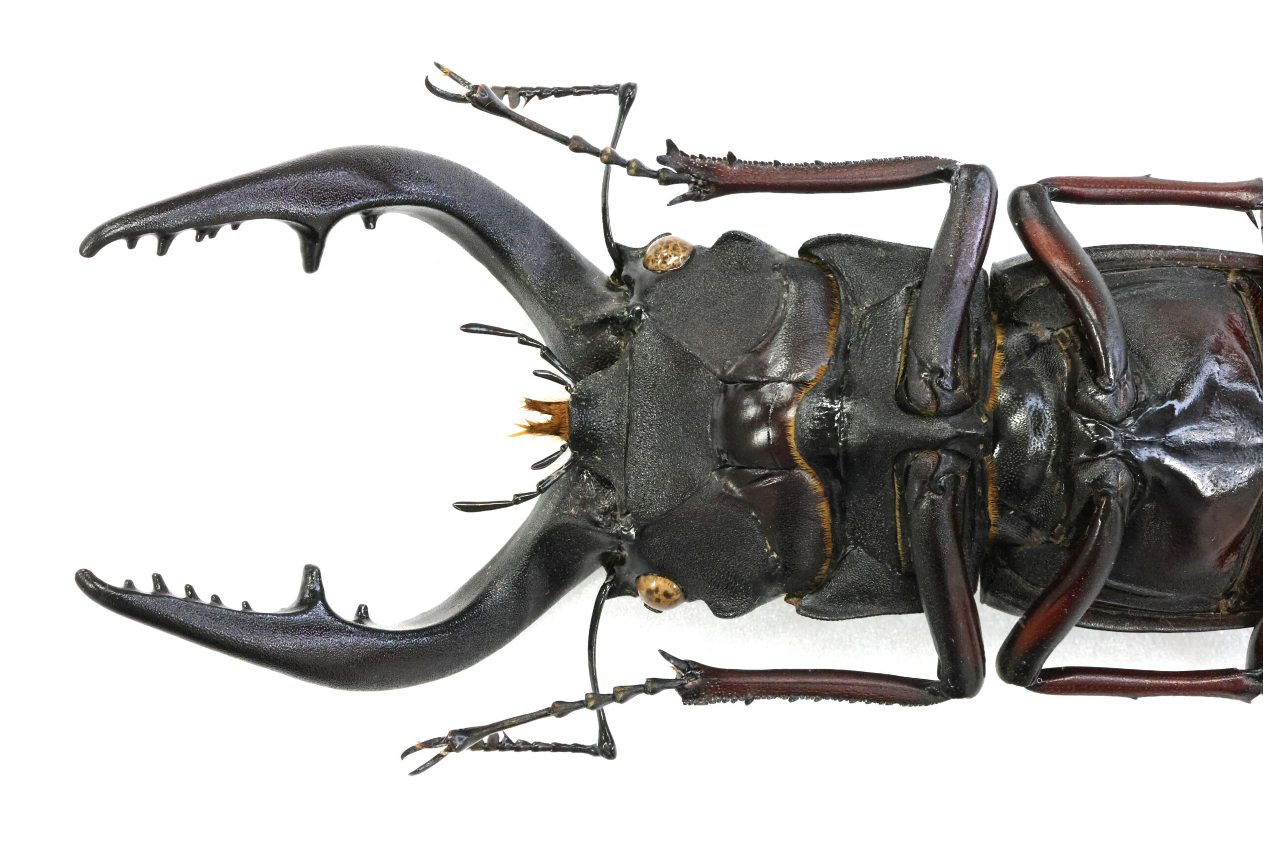標本を見ると、なんだかシンプルに感じます。大アゴのギザギザが小さいからだと思います。全体的にバランスの良いノコギリクワガタですね。