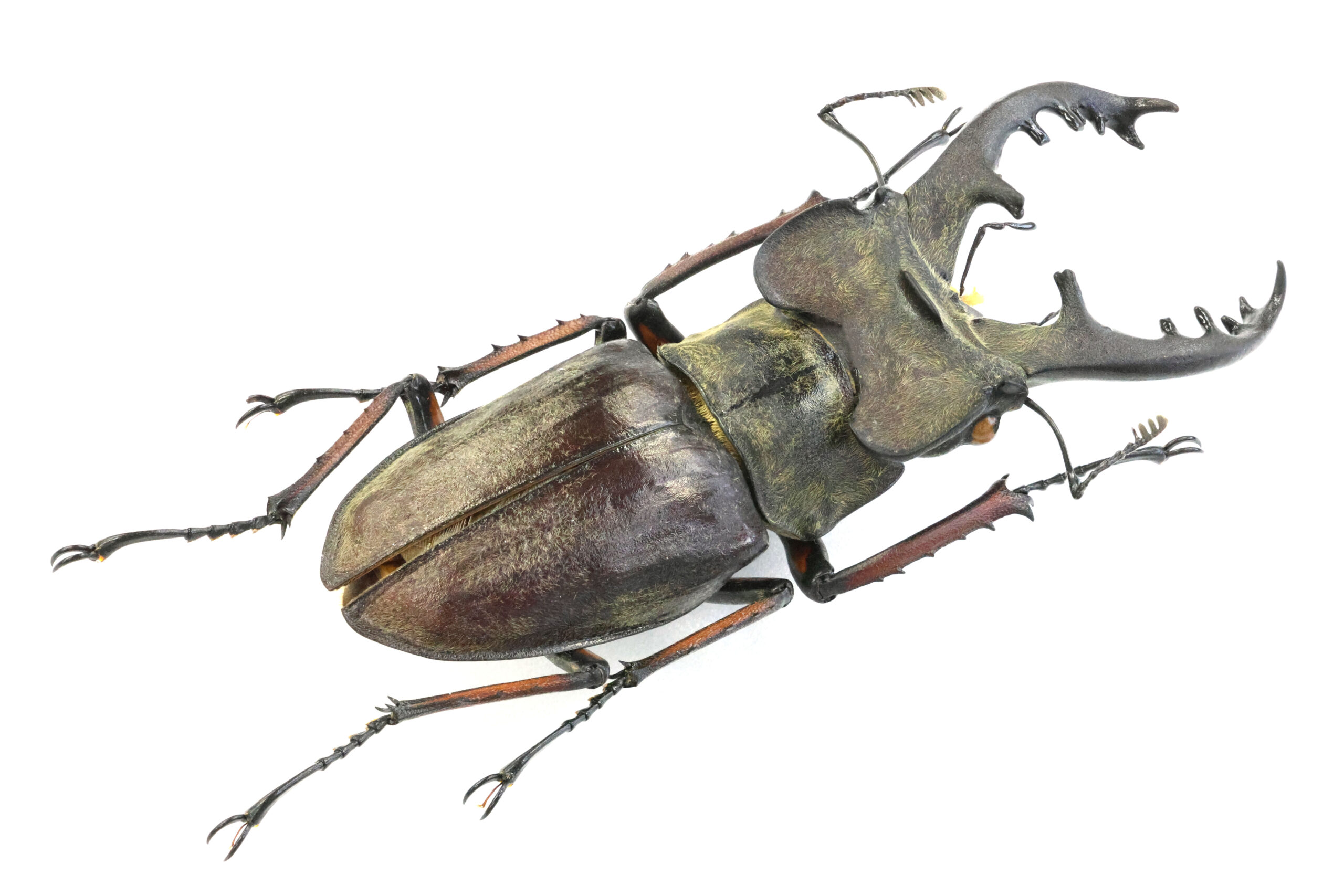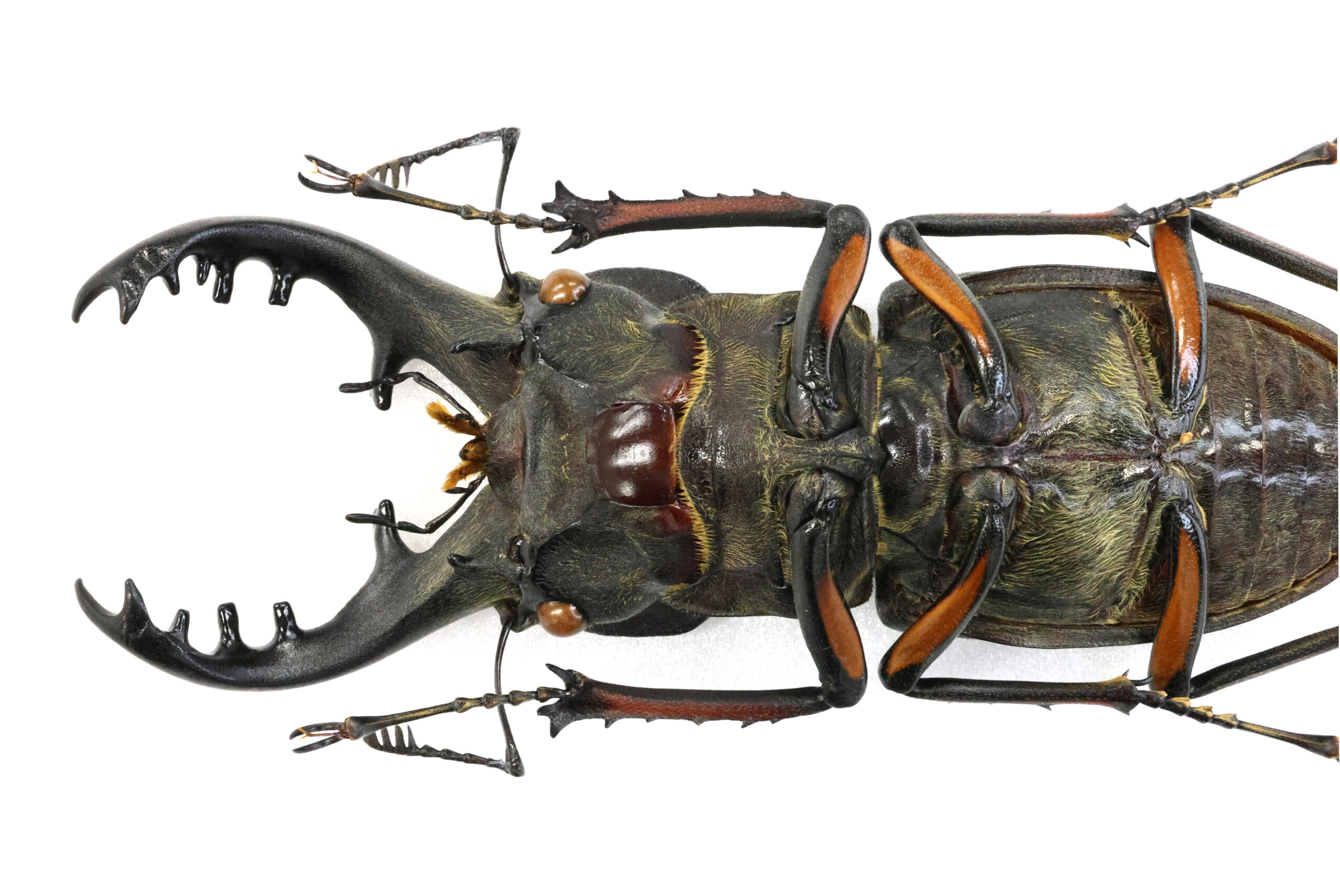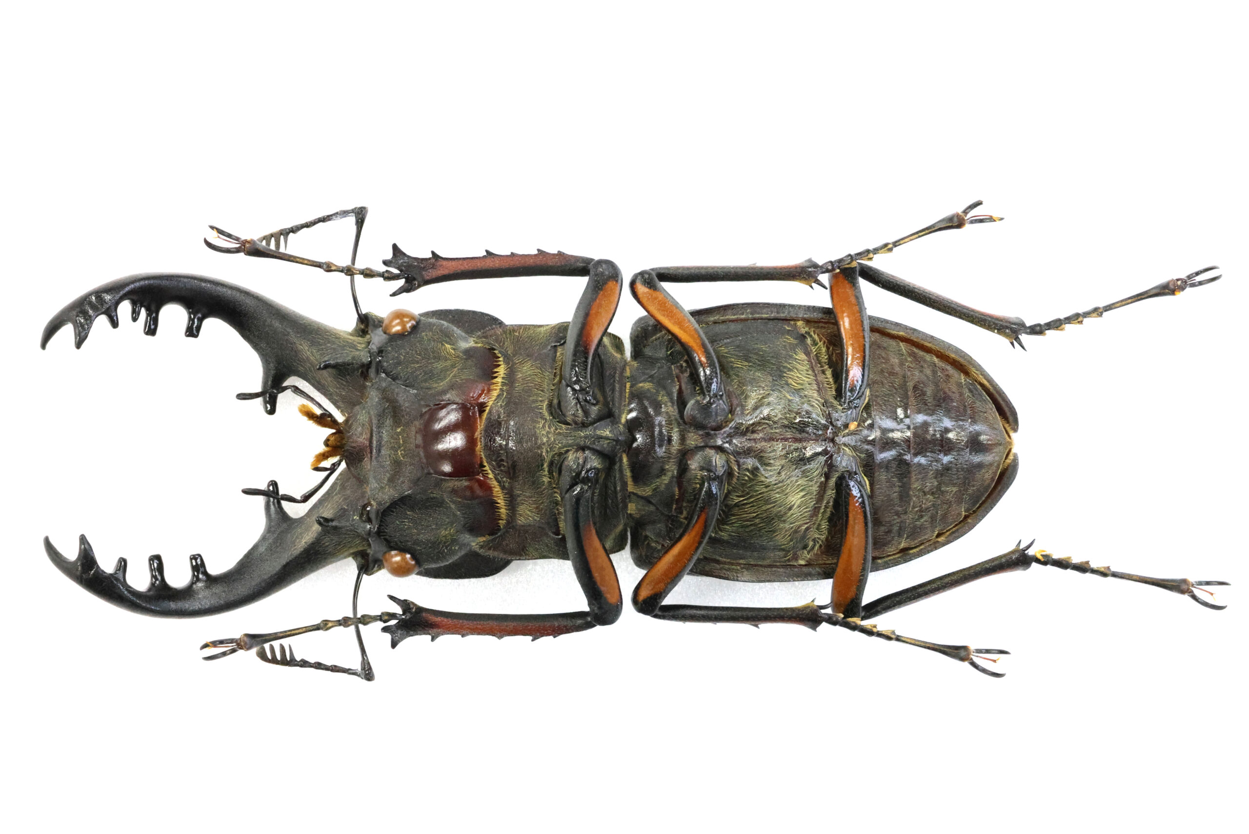 スラっと細身の個体、驚くほど太い個体、大あごの形状は多様です。赤みの強い個体もいれば、かなり黒い個体も見られます。