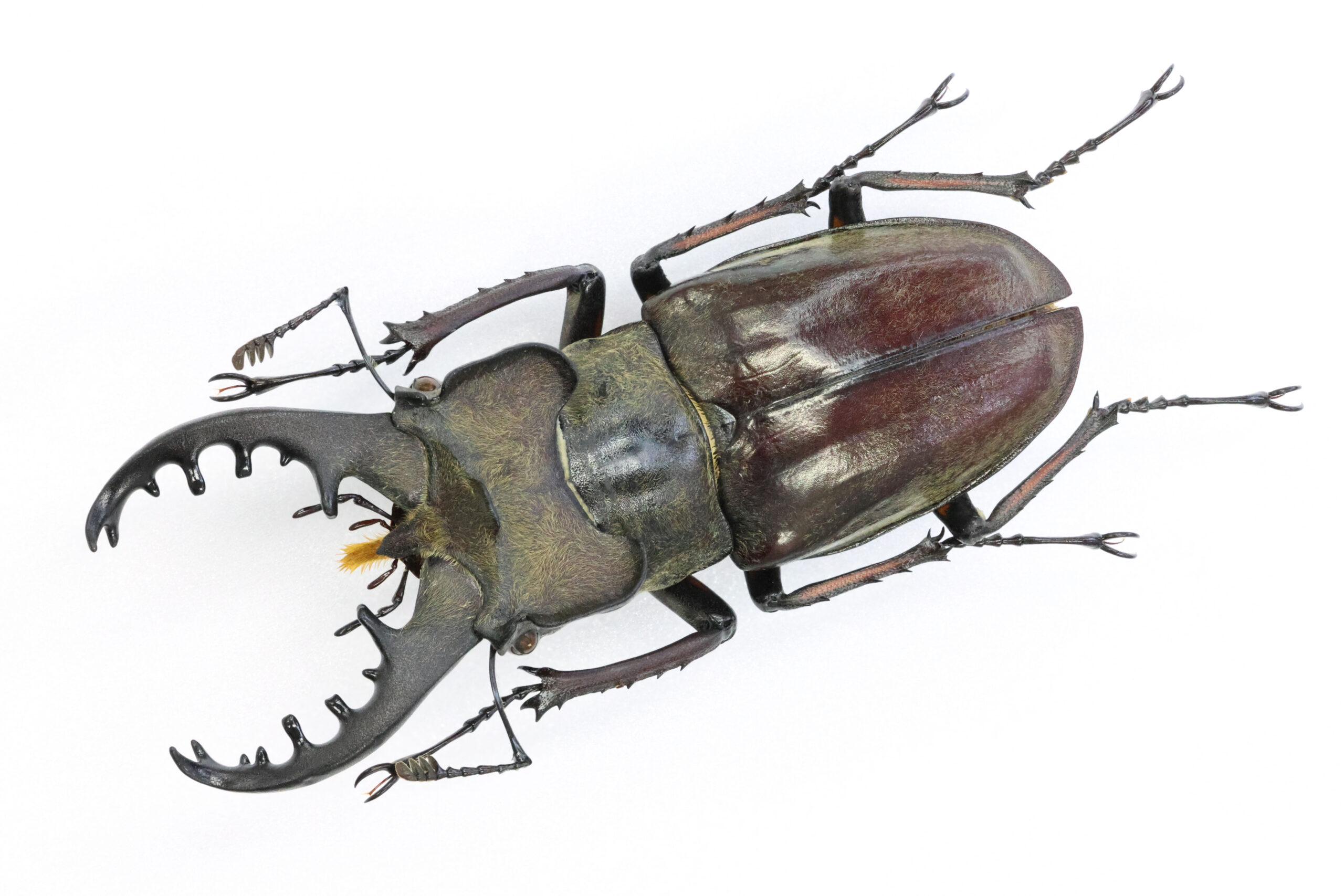 腹部(上翅)は確かに大きいですが、大アゴは決して短くないです。発達した大アゴは大きくWAVEを描いています。立派な第一内歯のすぐ上にちょこっと前方に突き出した内歯(突起?)が印象的!エレガントなクワガタですね。