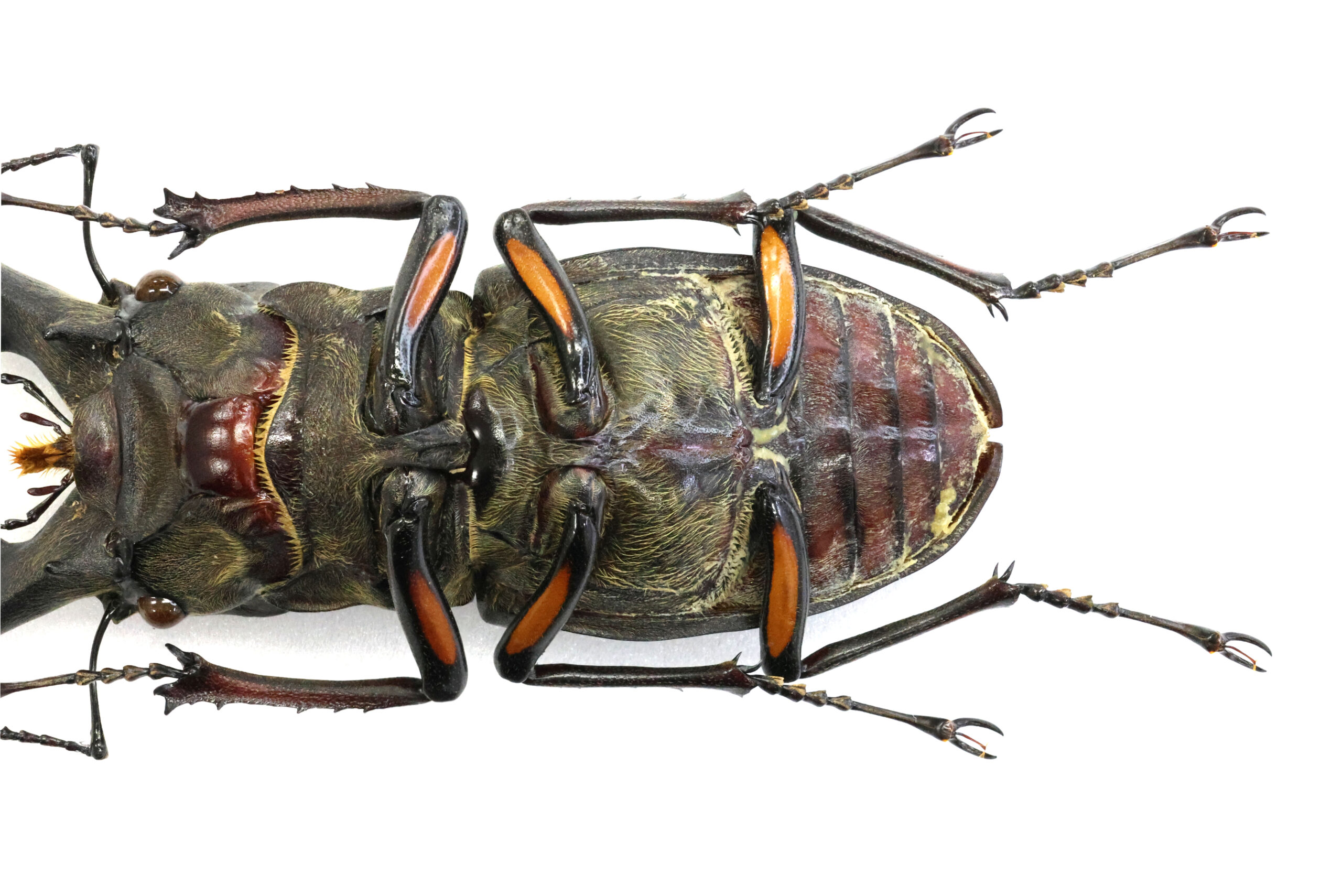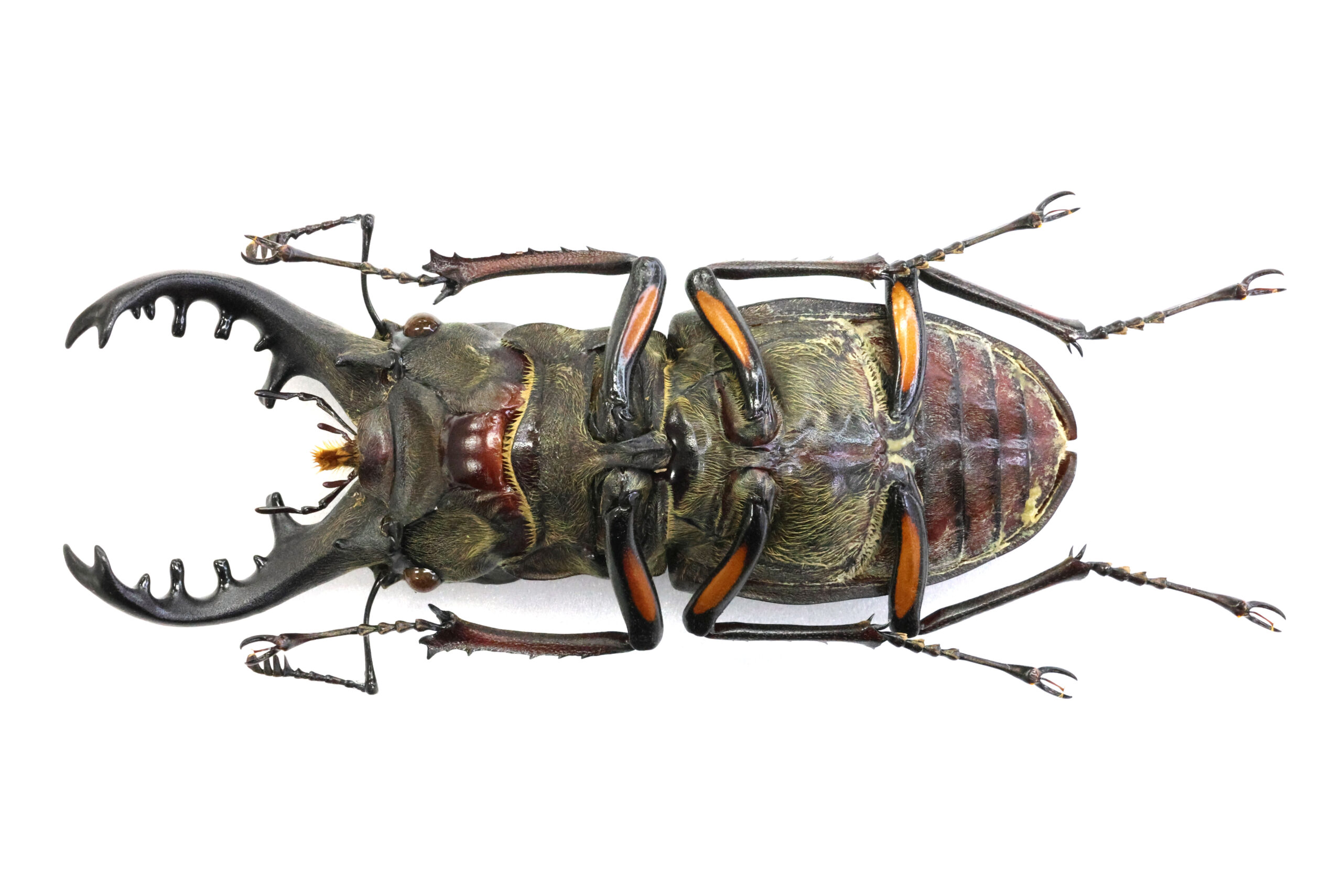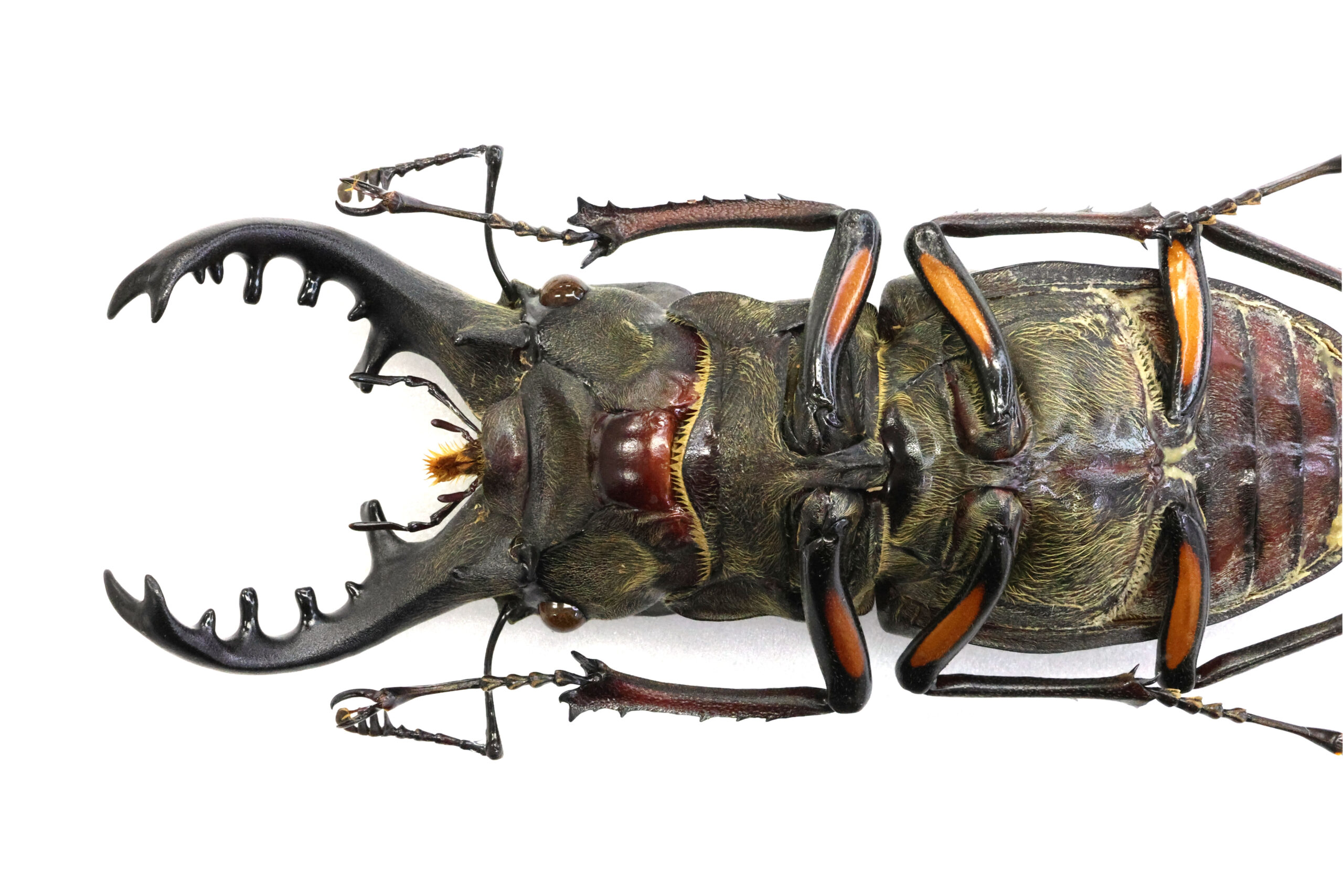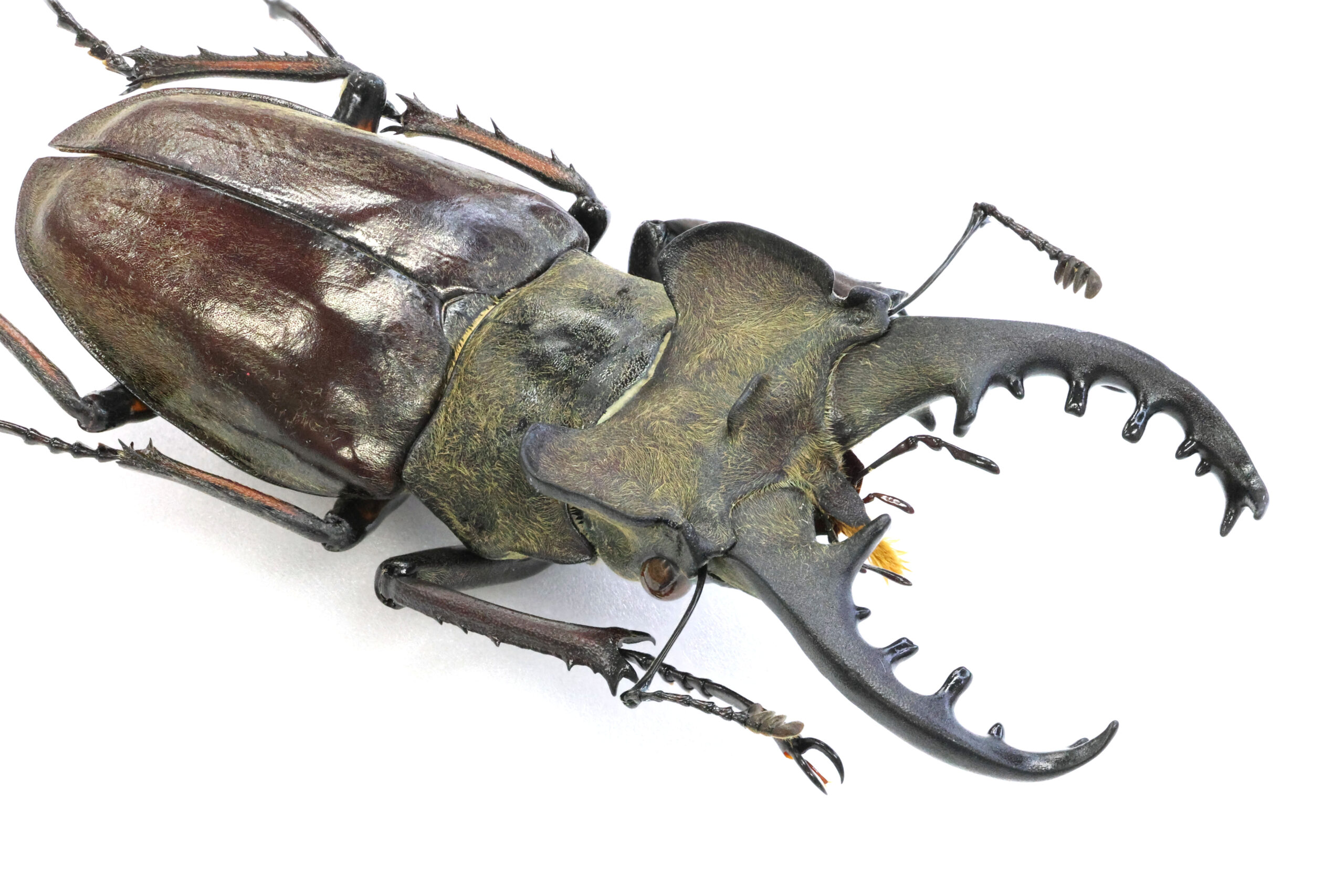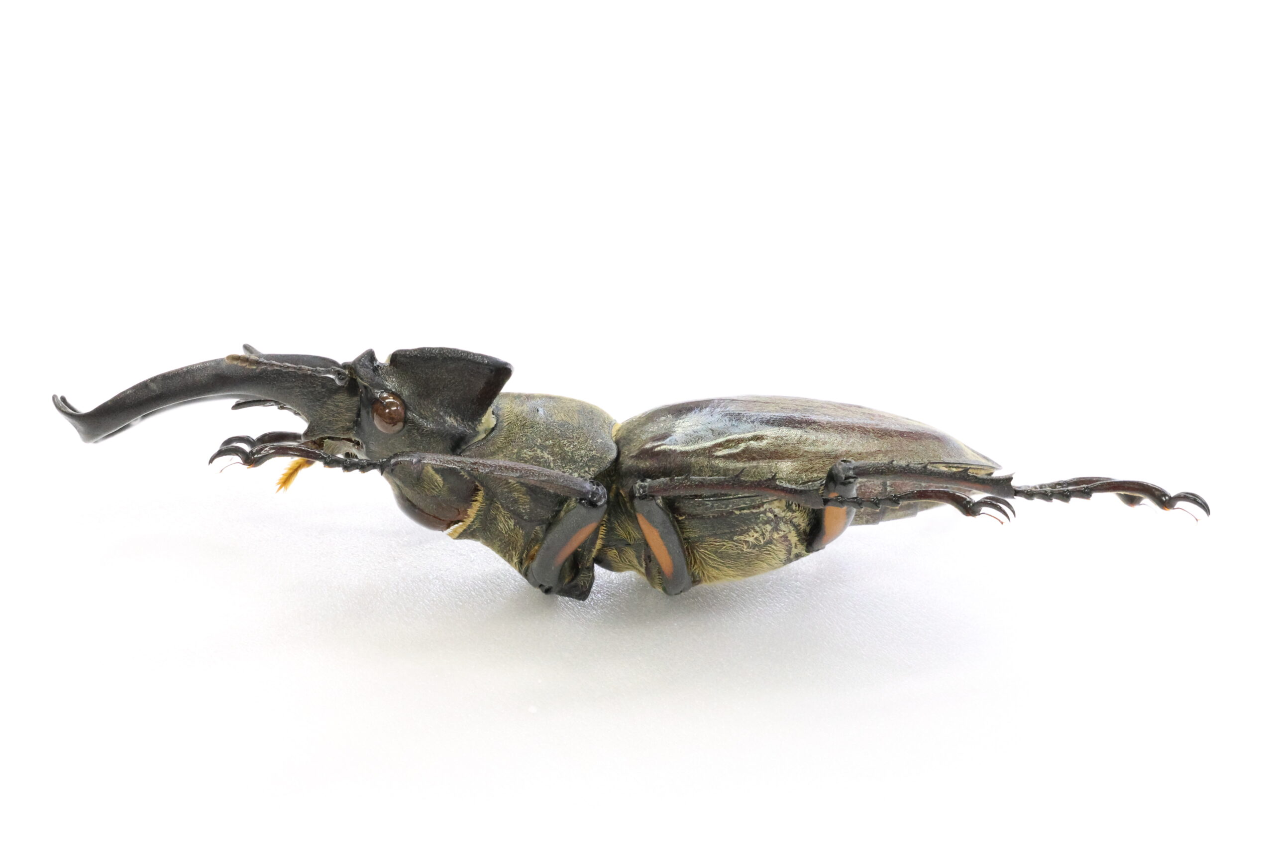 本個体も、展脚後、普通に乾燥させると上翅が大きく開いてしまうタイプでした。貴重なサイズですので、なんとか格好良く仕上げたいと思い、虫ピンで上翅を強めに抑え込んだ状態で、ゆっくりと時間をかけて乾燥させました。