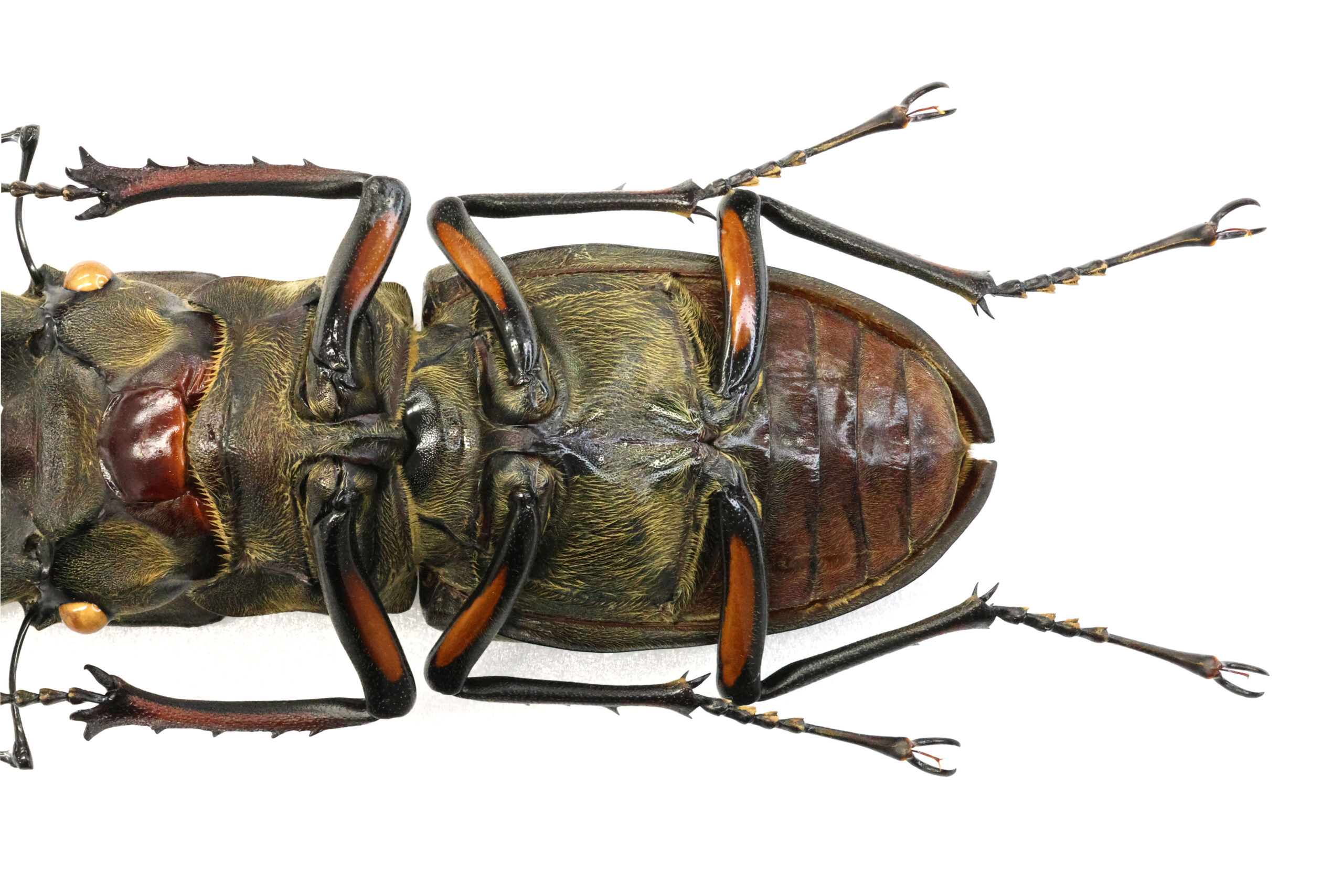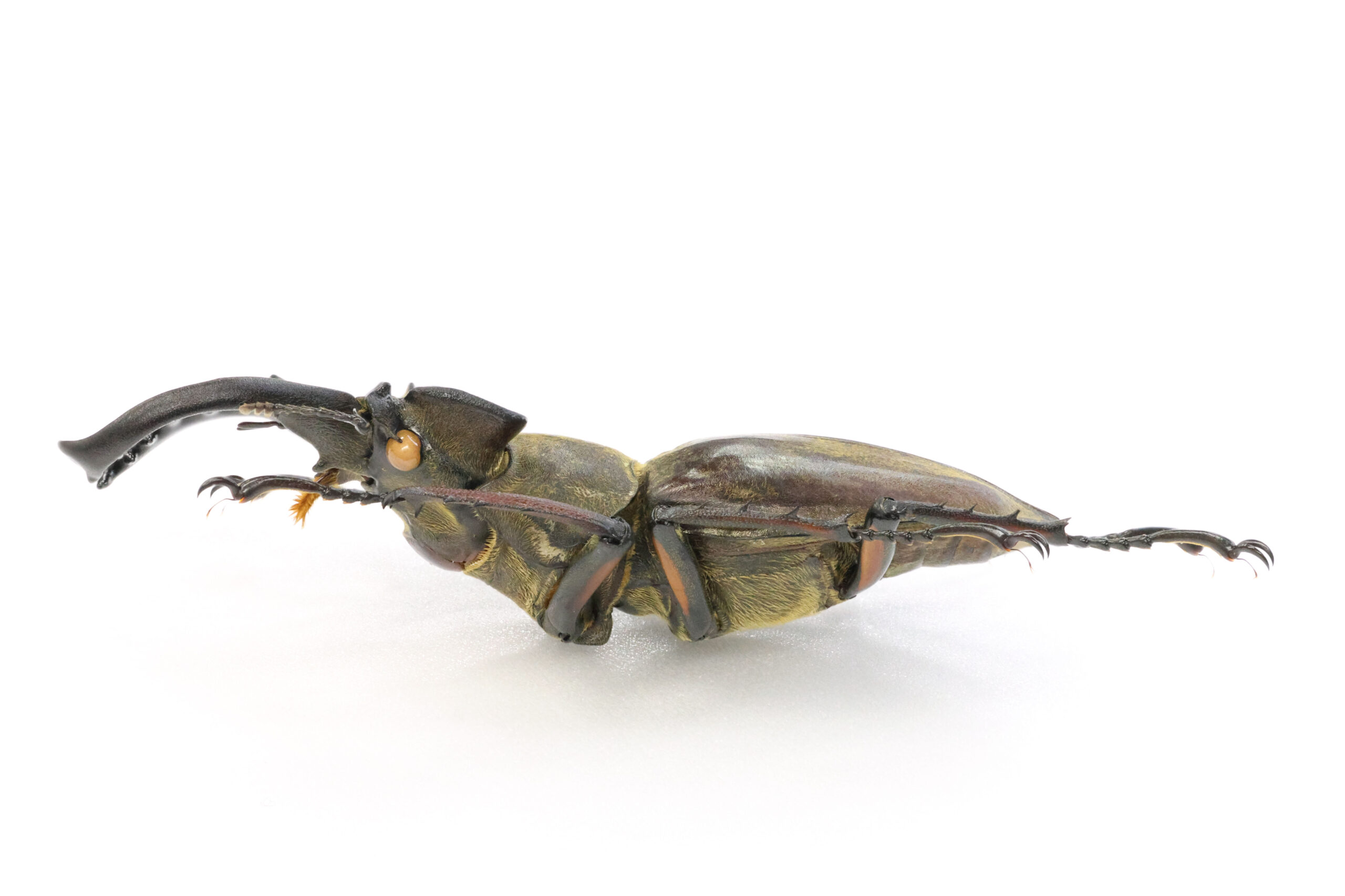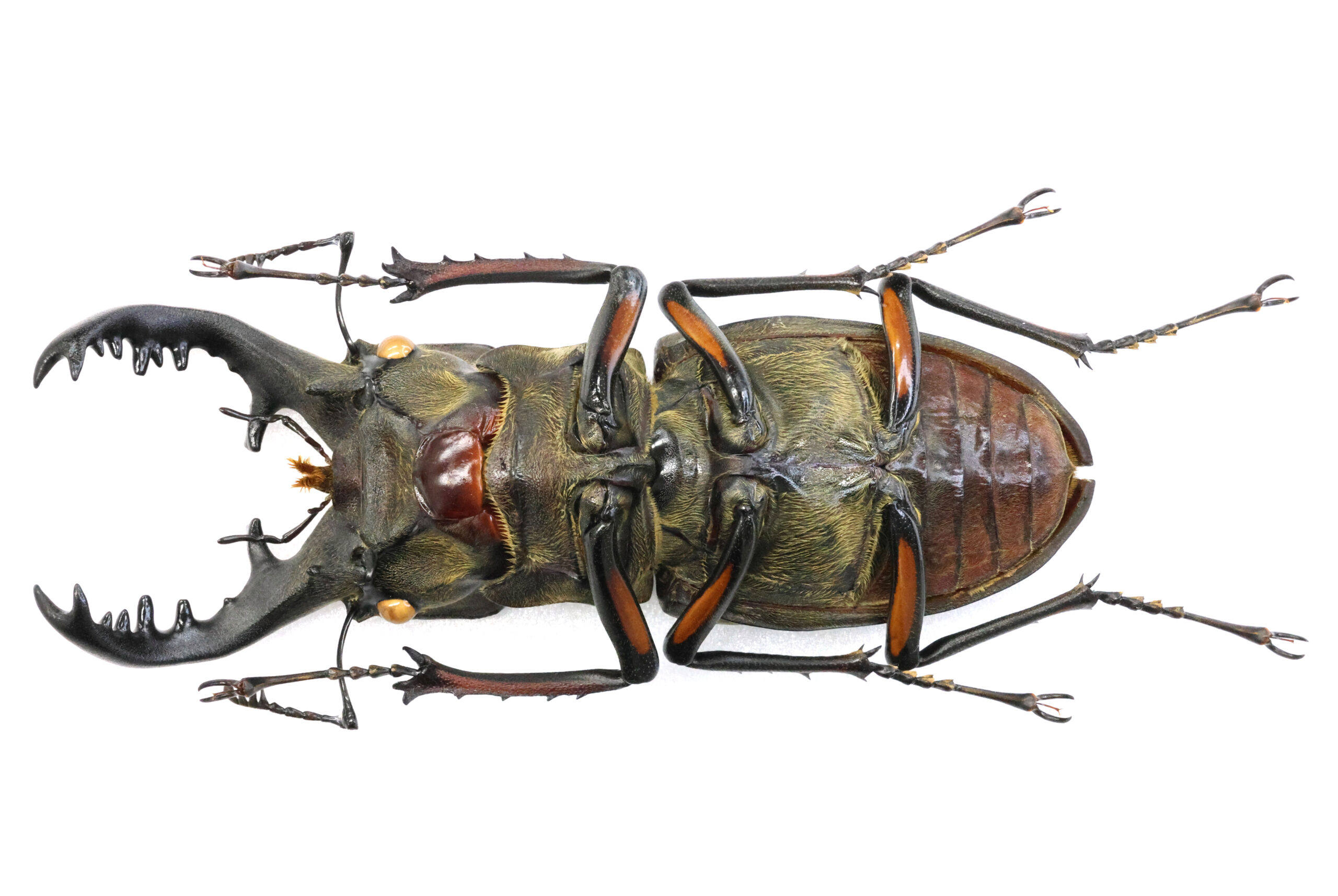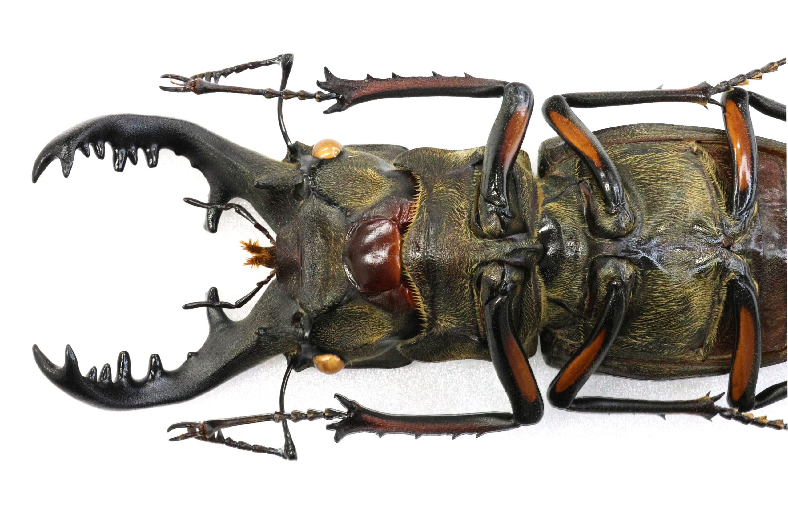 さて、本個体を見て下さい。大アゴの伸びはそれほどでもないのに、77ミリ越えの特大ミヤマクワガタです。こんな個体は10年に1度、出会えるかどうか!だそうです。また、左アゴの内歯が1本多いためか雰囲気(顔)が違って面白いと思います。滋賀県内で採集された最大クラスOld Correctionになります。