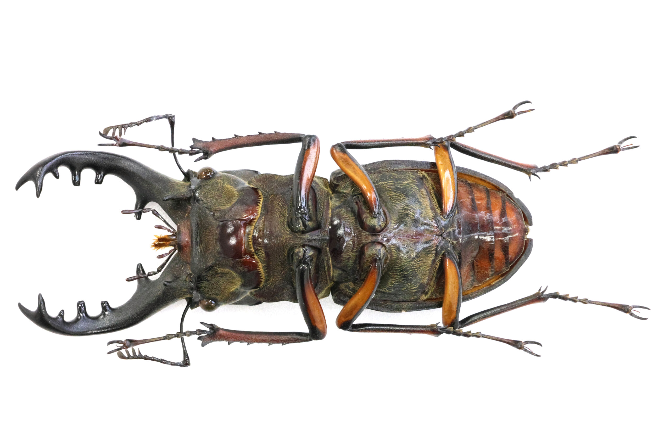 大アゴは、第一内歯がしっかり突き出ているのでフジ型と言ってよいと思いますが、アゴ先が鹿角のように二股に開いています。ミヤマクワガタの人気は、多様な大アゴの形状がポイントになっていると感じます。1,000頭以上のミヤマクワガタを見てきましたが、同じフォルムは1つもない!自然が生み出した芸術品だと思います。