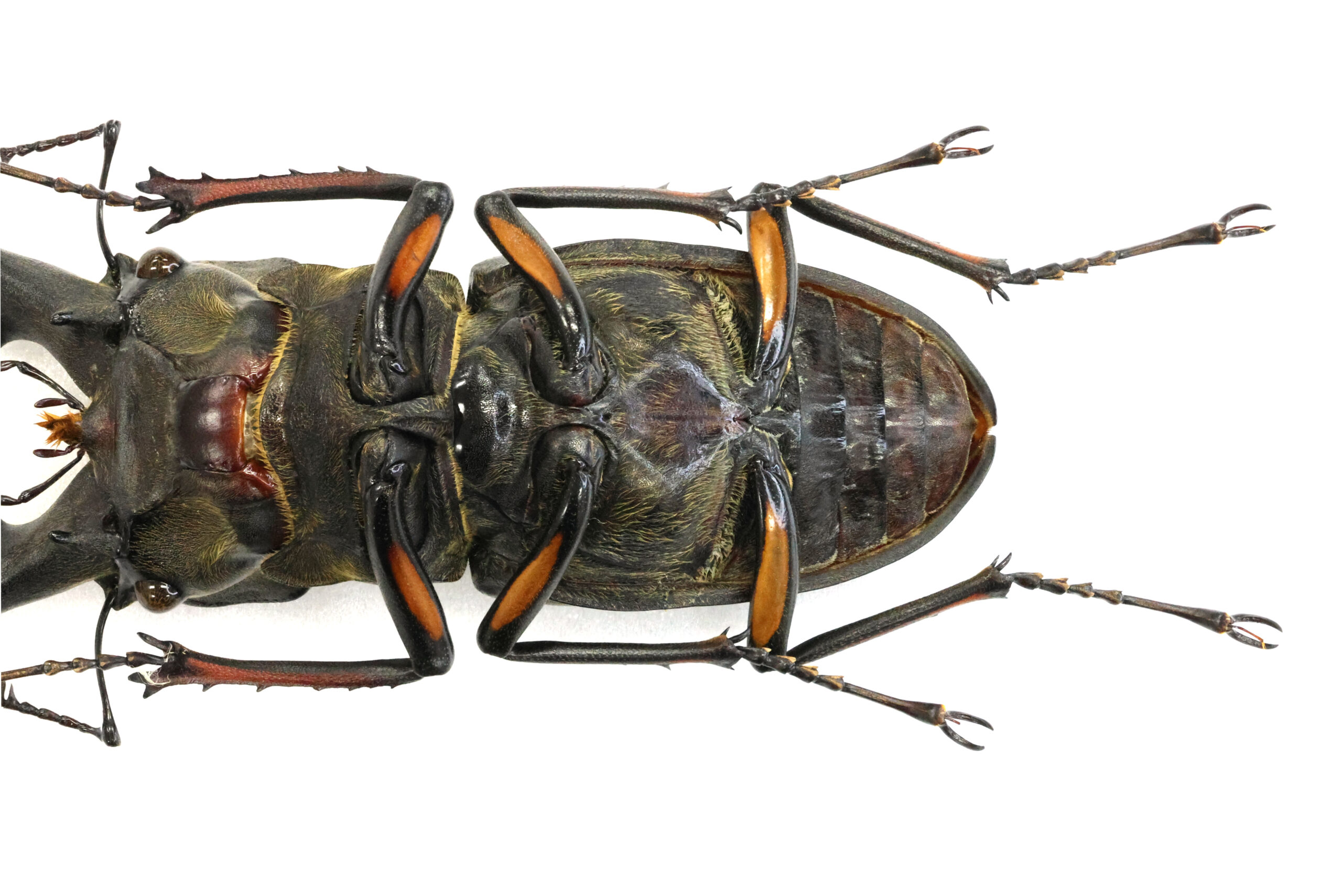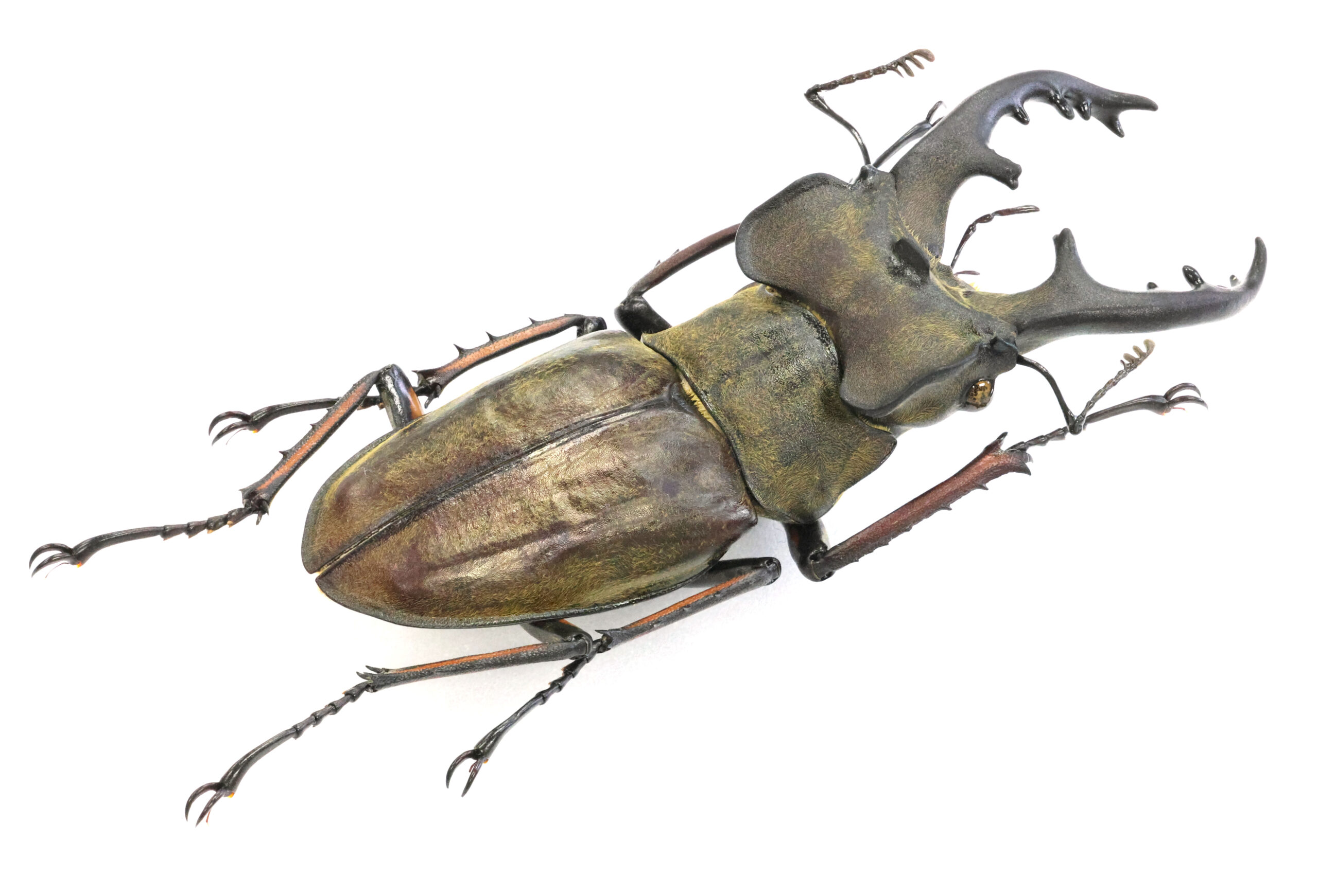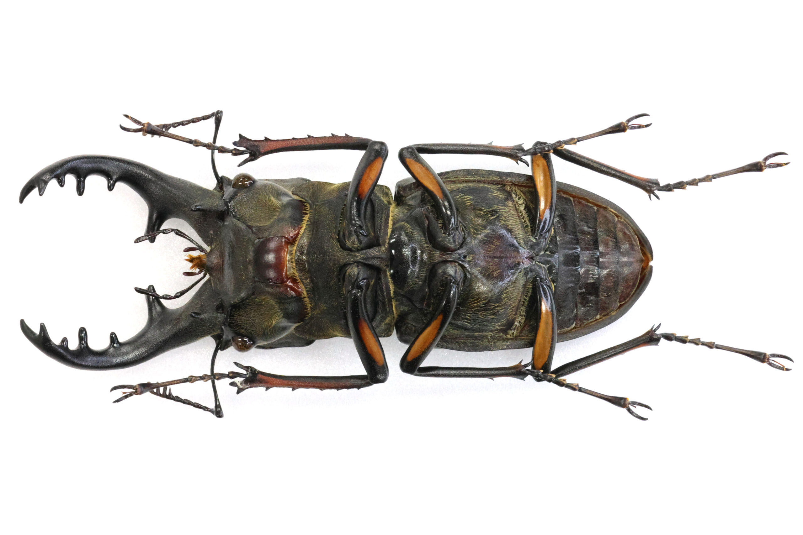 最大(最長)個体と比較しますと、頭部と大アゴの第一内歯の発達が、本個体の方が圧倒的に良いです。ナンバー1個体を隣に並べてみても、こちらの方が大きく感じられます。格好良いフジ型個体ですね。同じ地域でも大アゴの変異が楽しめる!ミヤマクワガタ人気を支えている要因の一つと感じます。