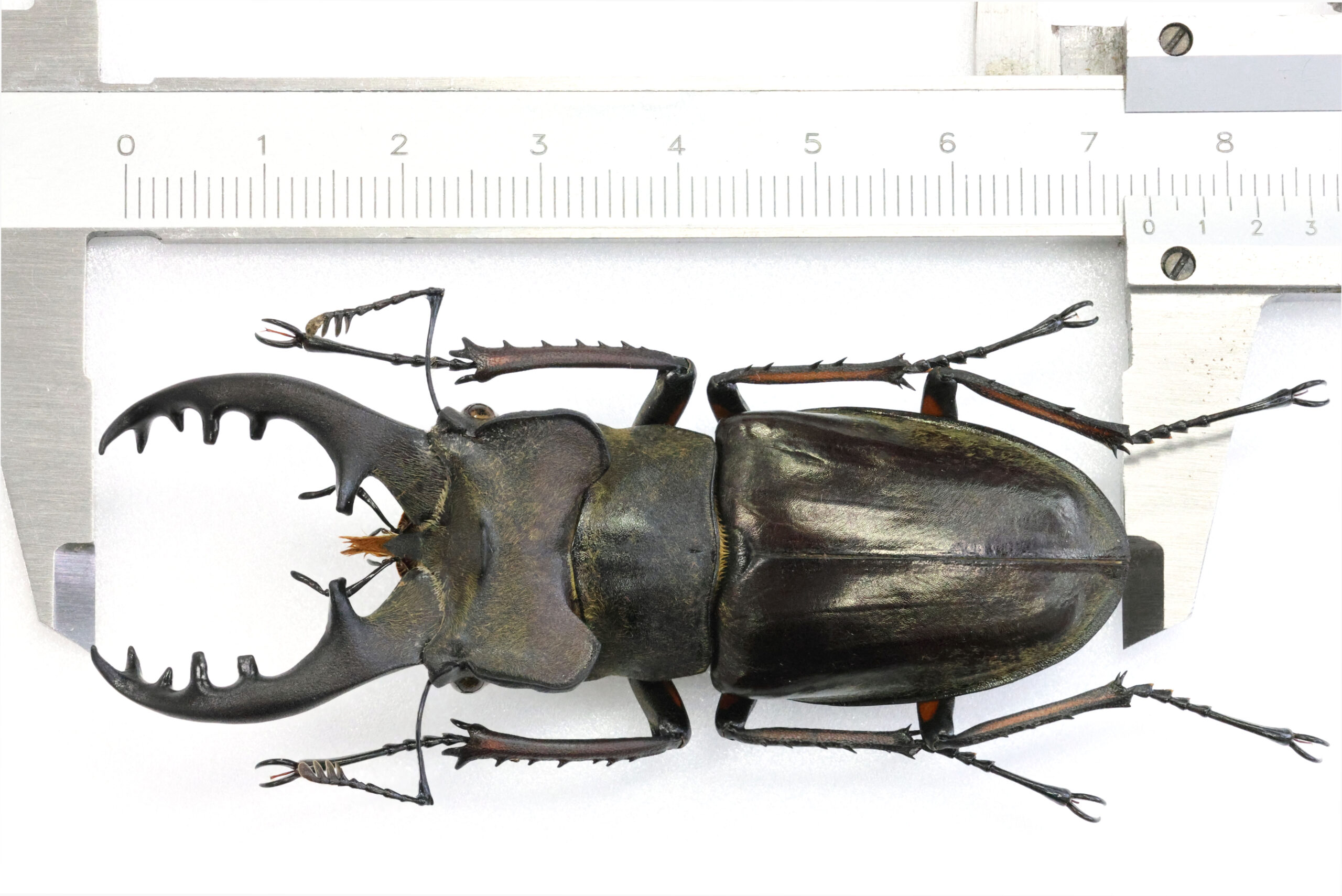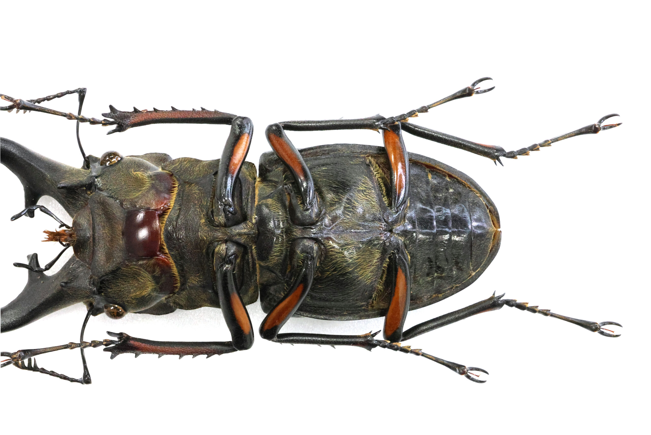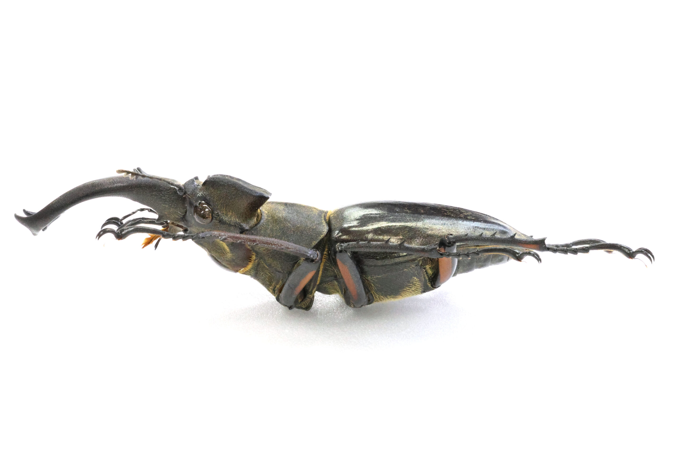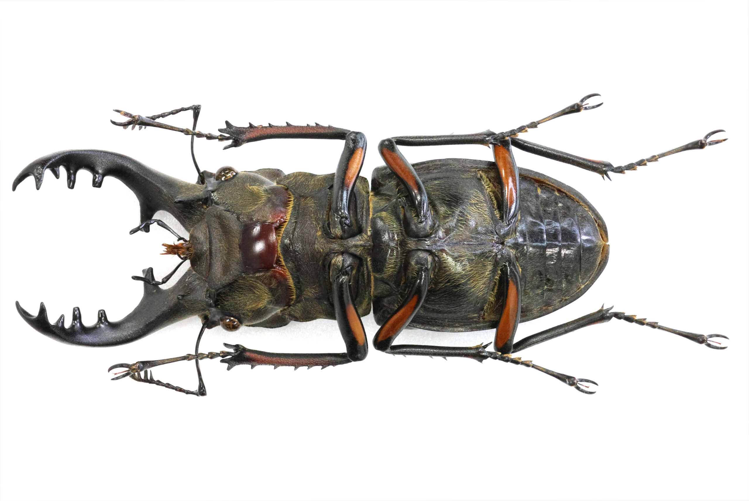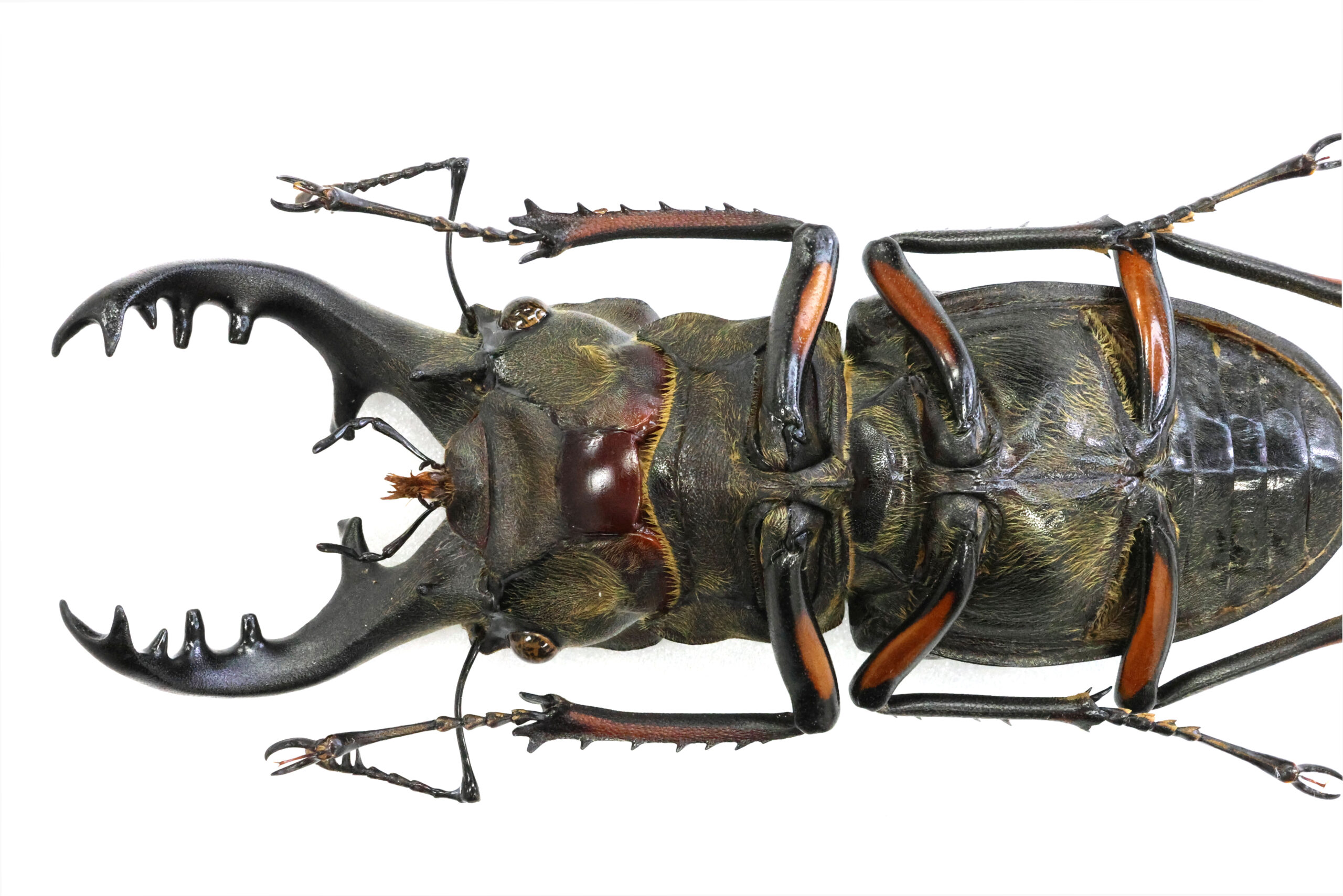 立派で美しいフォルムです。頭幅が20ミリを超えてくると、一気に迫力が出てきますね。耳状突起が左右に広がる私好みのタイプです。太い第一内歯と大アゴの太さも格好良いと思います。