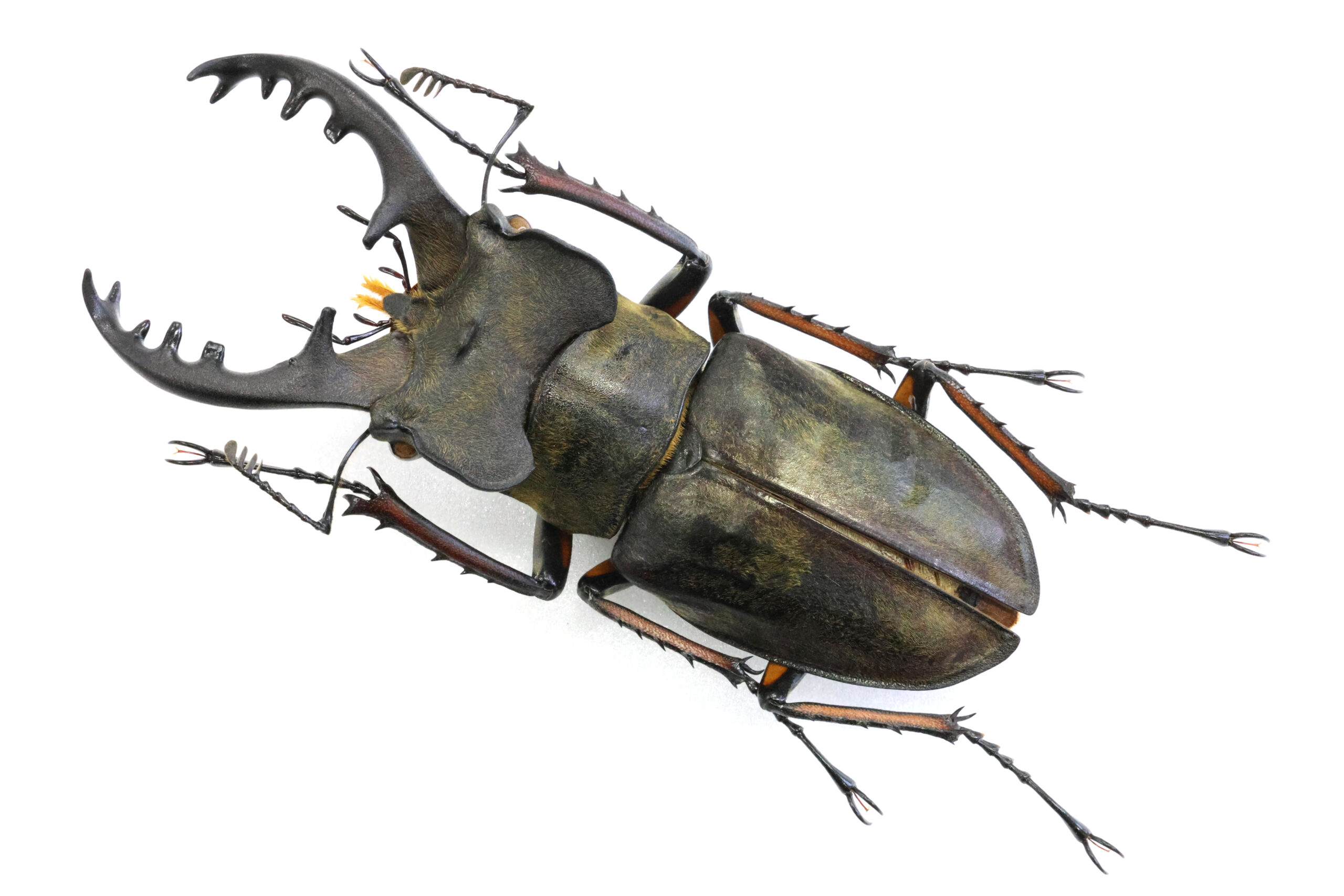 大アゴの伸びが良いですね。発生初期の6月末に採集されたこともあって体を覆う微毛もたくさん残った美しいミヤマクワガタです。