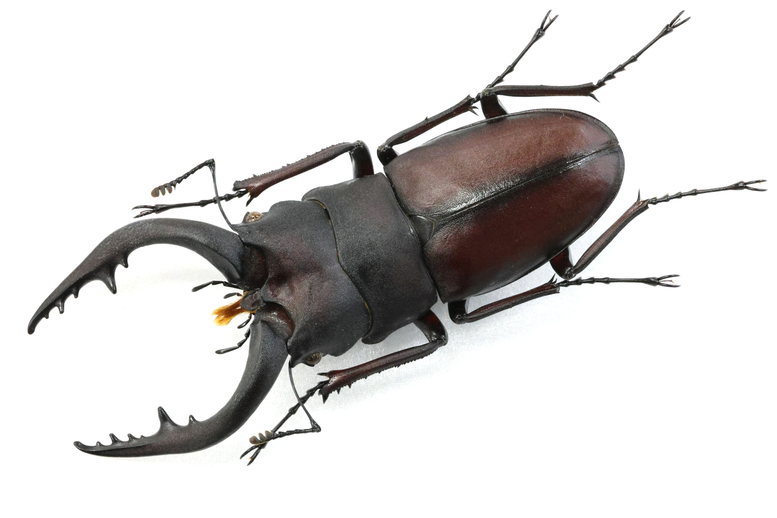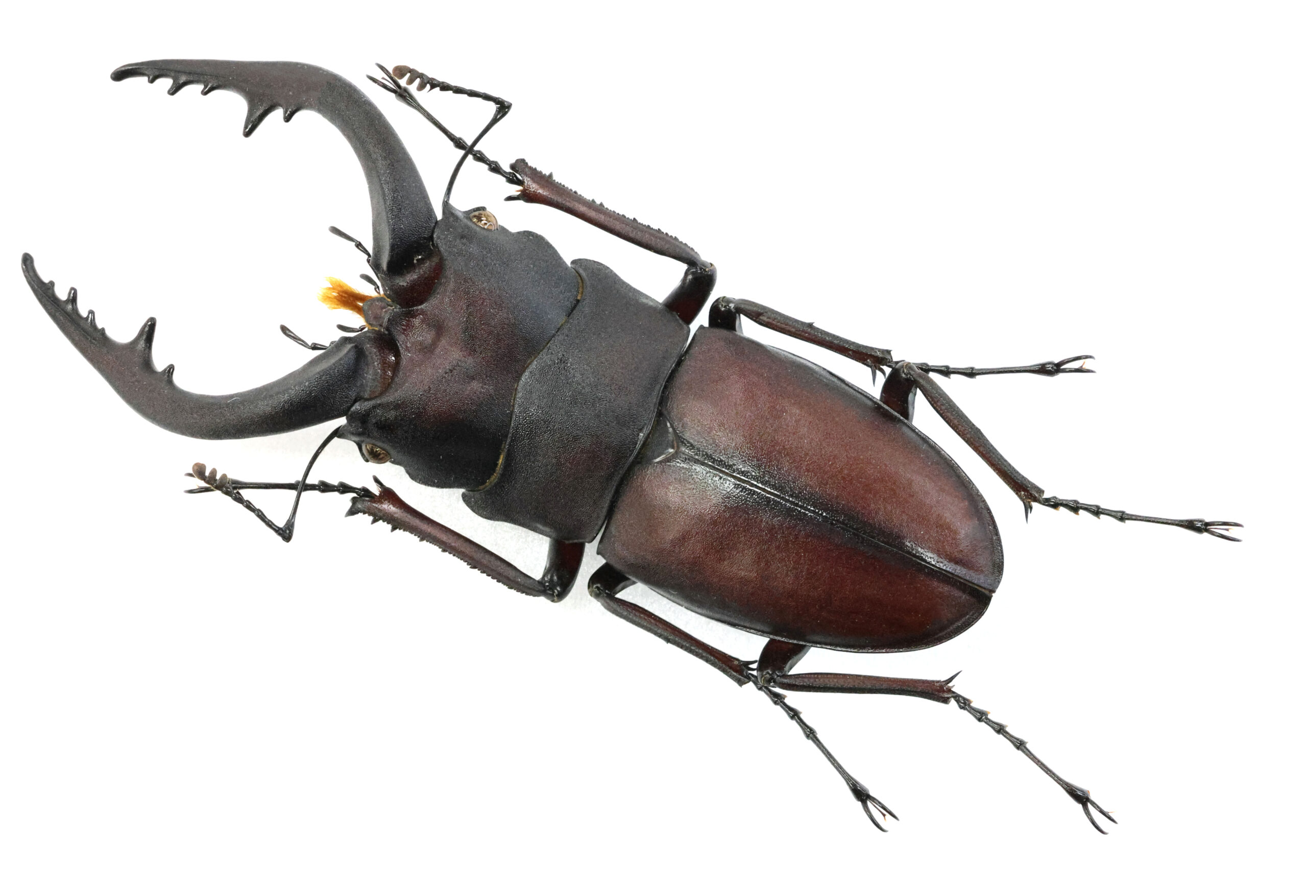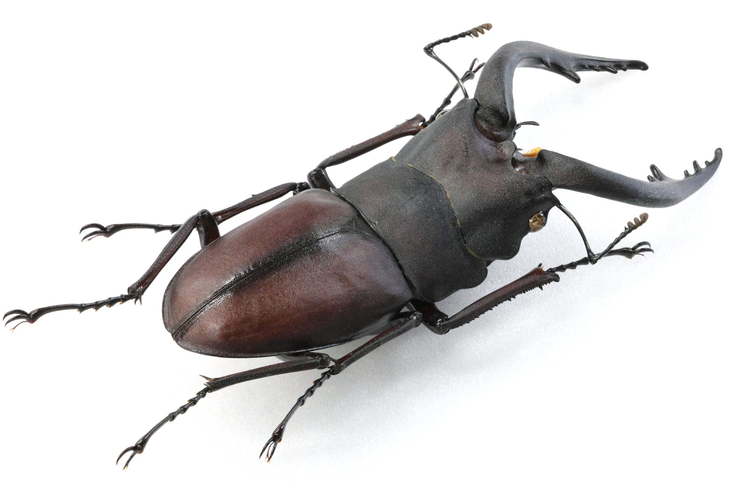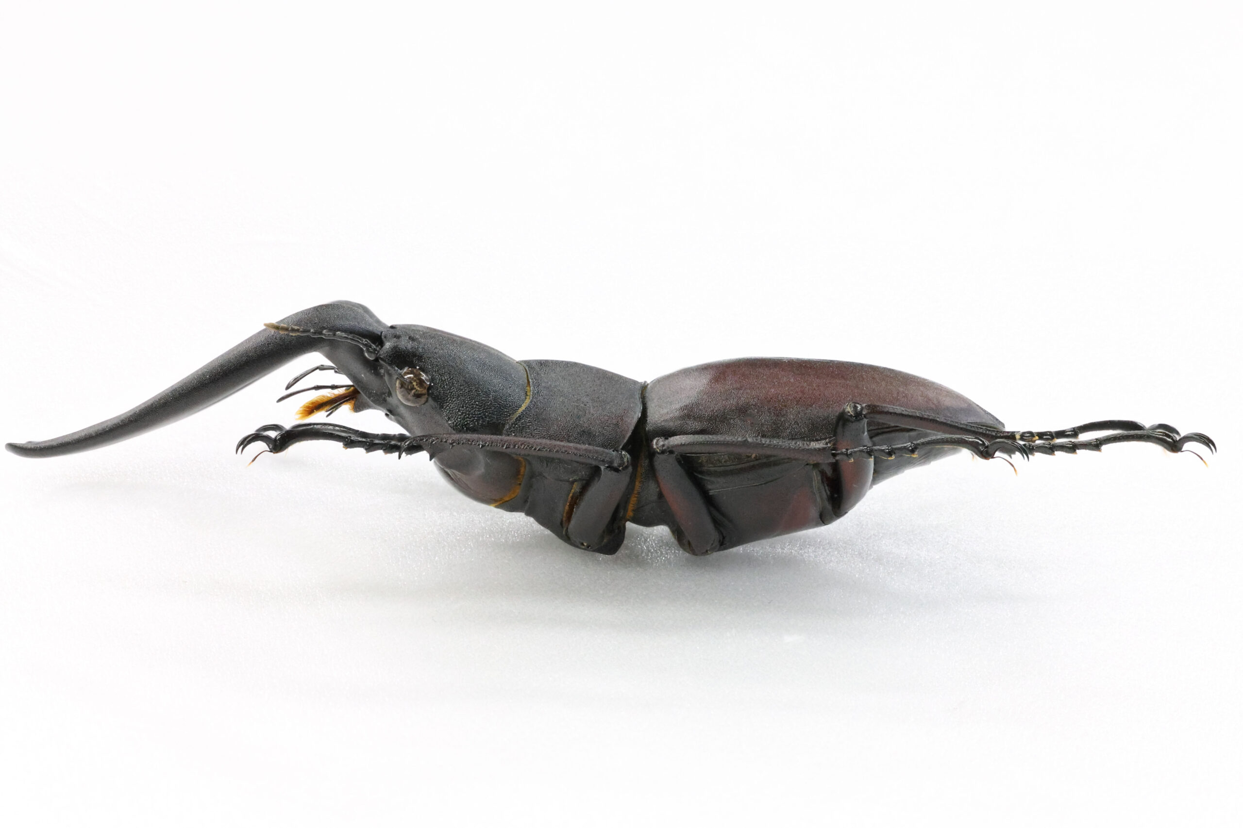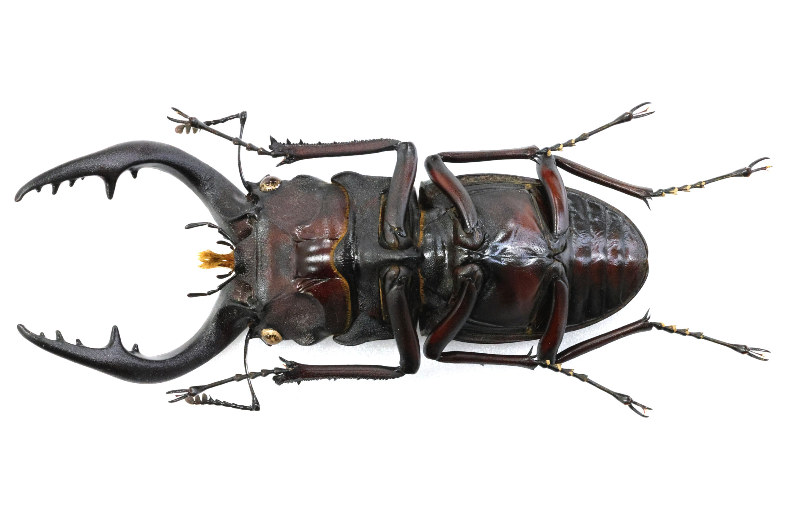 ただ、地域別に並んだノコギリクワガタ(標本)を見ていると、また疑問が…北海道のノコギリクワガタはかなり湾曲する個体が多く見られます。北海道は、今でこそ(残念ですが)カブトムシが見られますが、昔は分布していませんでした。北海道のカブトムシは、人間が持ち込んだ個体が繁殖してしまった国内外来種となります。1970年代から80年代にかけてカブトムシが北海道に定着したと言われています。となると…50年以上前は湾曲した大アゴを振るう大きな相手(カブトムシ)がいなかったわけです。
