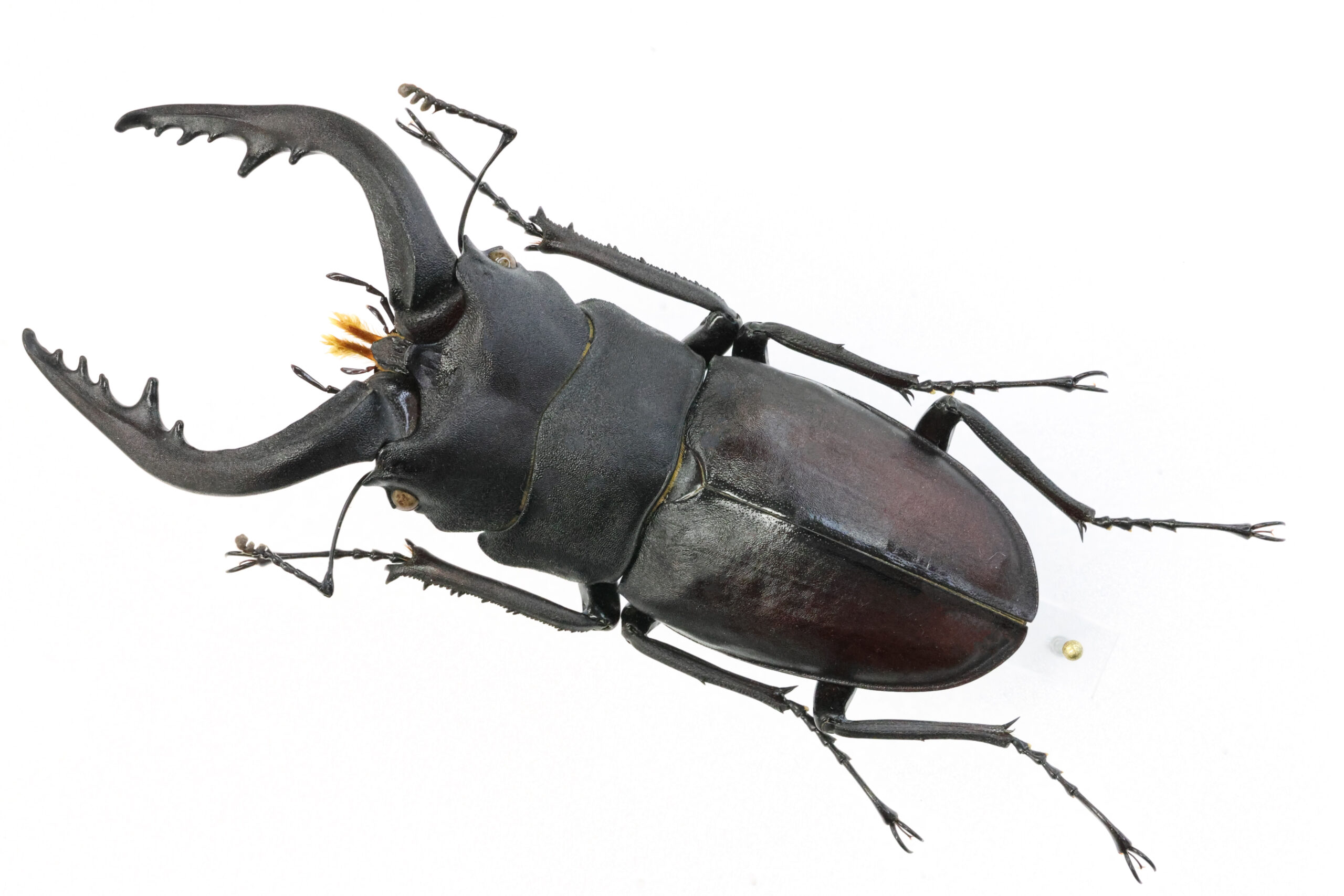あらためて九州(大分)のノコギリは大きい!夜の樹液巡り(クヌギ)でHさんが見つけた70ミリを悠々と超えて72ミリもある大きな個体です。大きく感じるのは、大アゴがしっかり曲がり(直線的に伸びず)、大アゴの長さで体長を稼いでいないからでしょうね。どちらかと言うと、関西地方(奈良)の特大個体はこんなフォルムだと思います。それが72ミリもあるのですから迫力が出ますね。