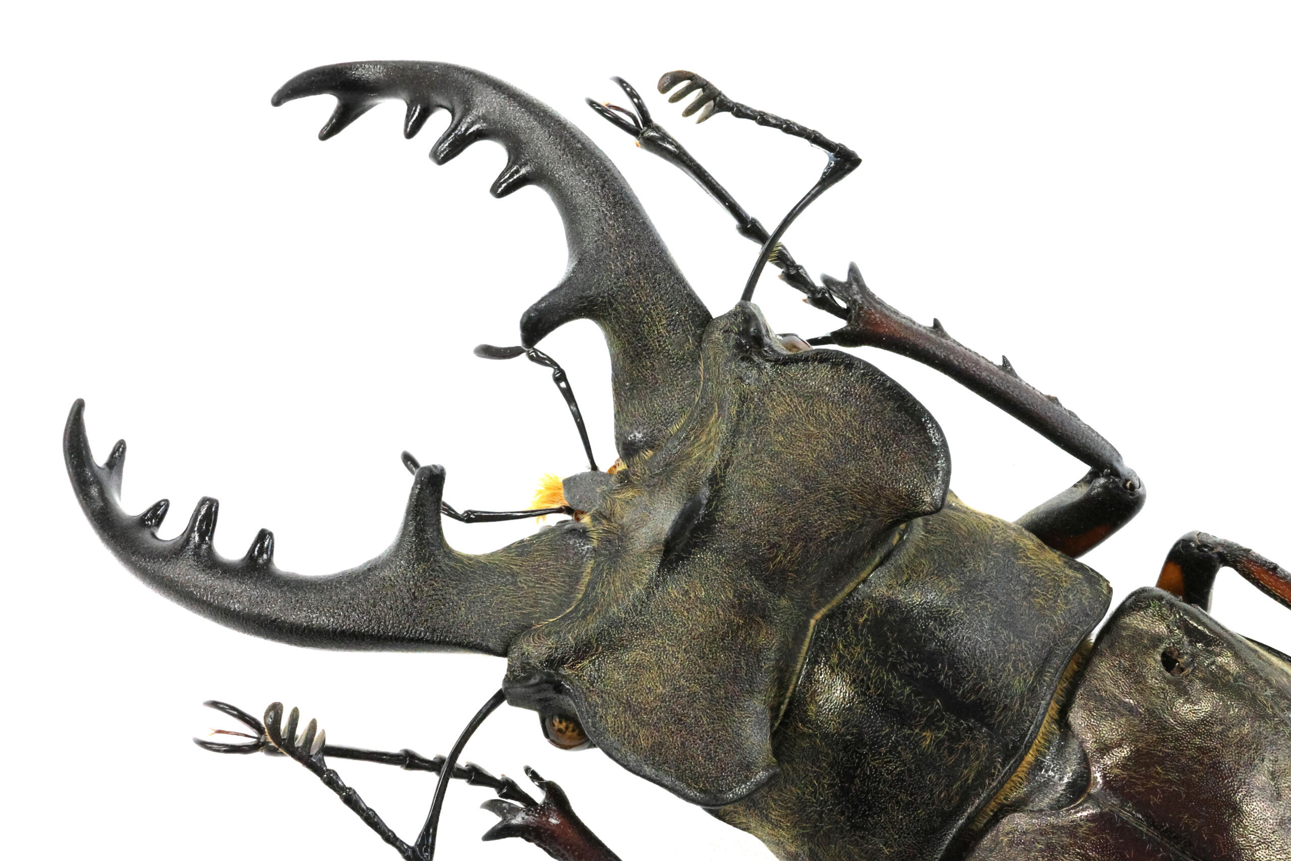 標本ですが、この格好良いミヤマを美しく残したくて、だいぶ上翅の開きを抑える努力をしてみたのですが…なかなか手強い。何度か話したことですが、上翅が軟らかいミヤマクワガタは、開きやすい個体が3~4割ほどいるように感じます。是非、ミヤマクワガタを飼育しているお子さんは触れてみて下さい。翅の軟らかさが感じられると思います。オオクワガタ、ヒラタクワガタ、コクワガタなどのDorcus系の上翅とは硬さがまったく違っています。実際に触れてみて、色んなことを感じてみて下さい。ただ…ギュッとではなくて…優しくお願いします。