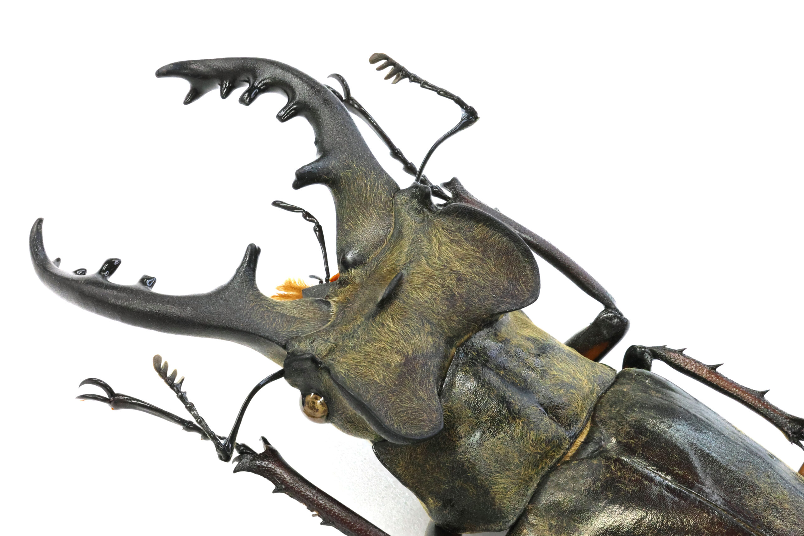 本個体は9頭目のCassiopeia Collection(Museum掲載個体)ミヤマになります。掲載中のミヤマクワガタを比較頂けるとわかりますが、本個体は頭幅が大きく(悠々と20ミリ超え)、第一内歯がよく発達しています。ゴツゴツ感のある立派なフジ型ミヤマクワガタですね。本Museumにて何度かお伝えしていますが、幼虫時代に過ごす冬季の温度が高いと第一内歯が大きく発達するようです(この考えは諸説あります…)。私が幼い頃に憧れた奈良のミヤマクワガタのフォルムがこれです。福島市よりだんぜん暖かい奈良市では、フジ型以外のタイプは見かけたことがありませんでした。ということは…やはり福島市も暖かくなってきていることが見えてきますね。