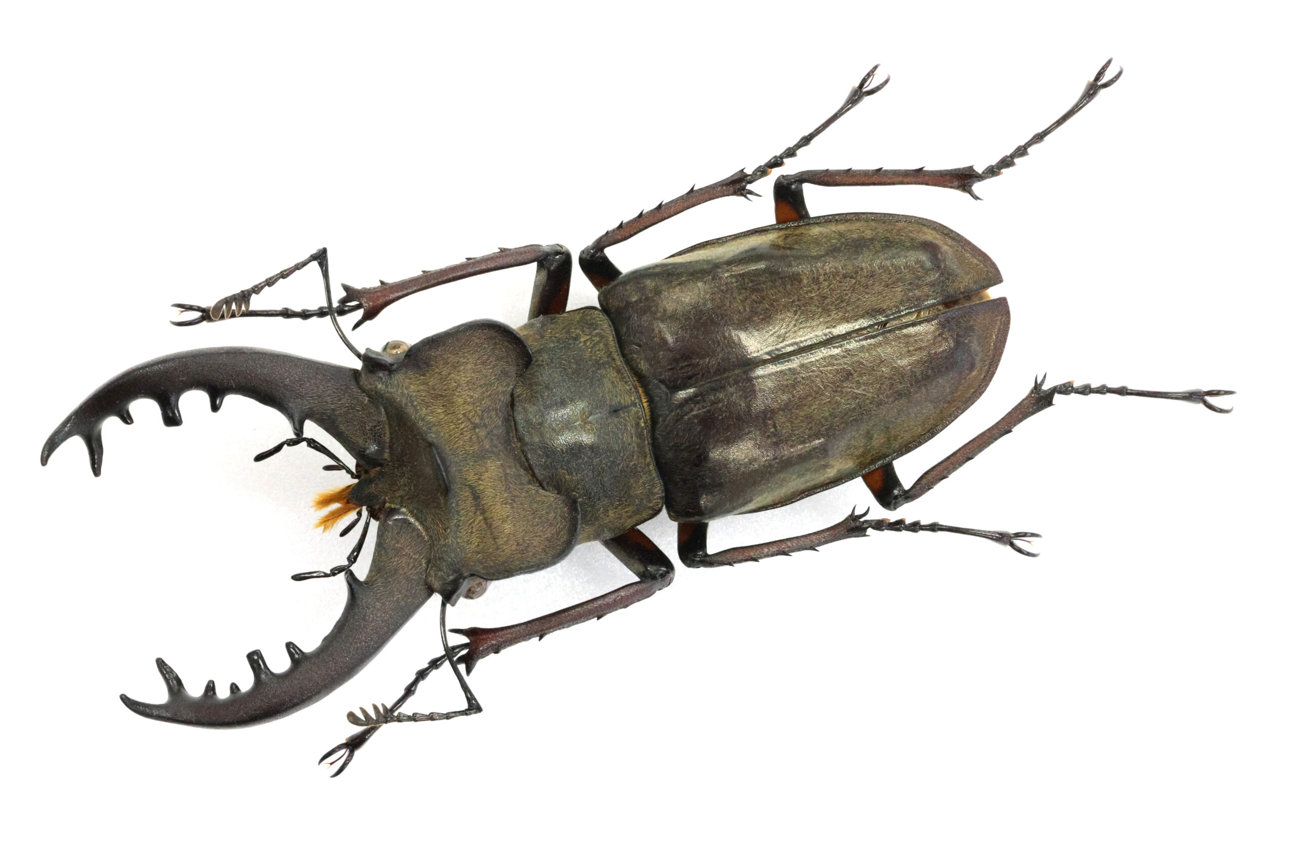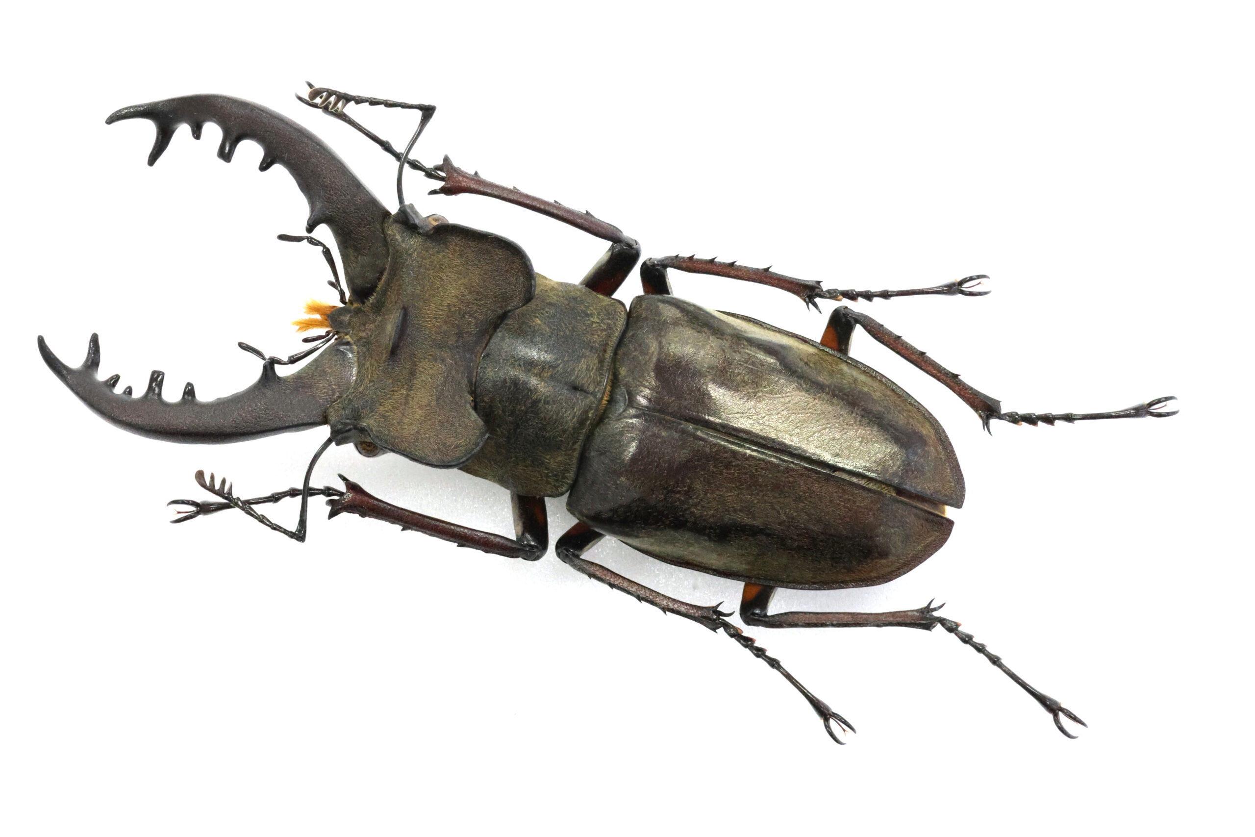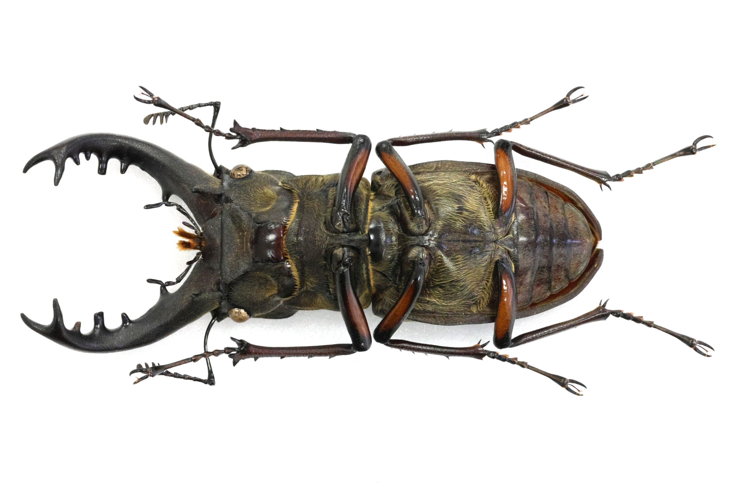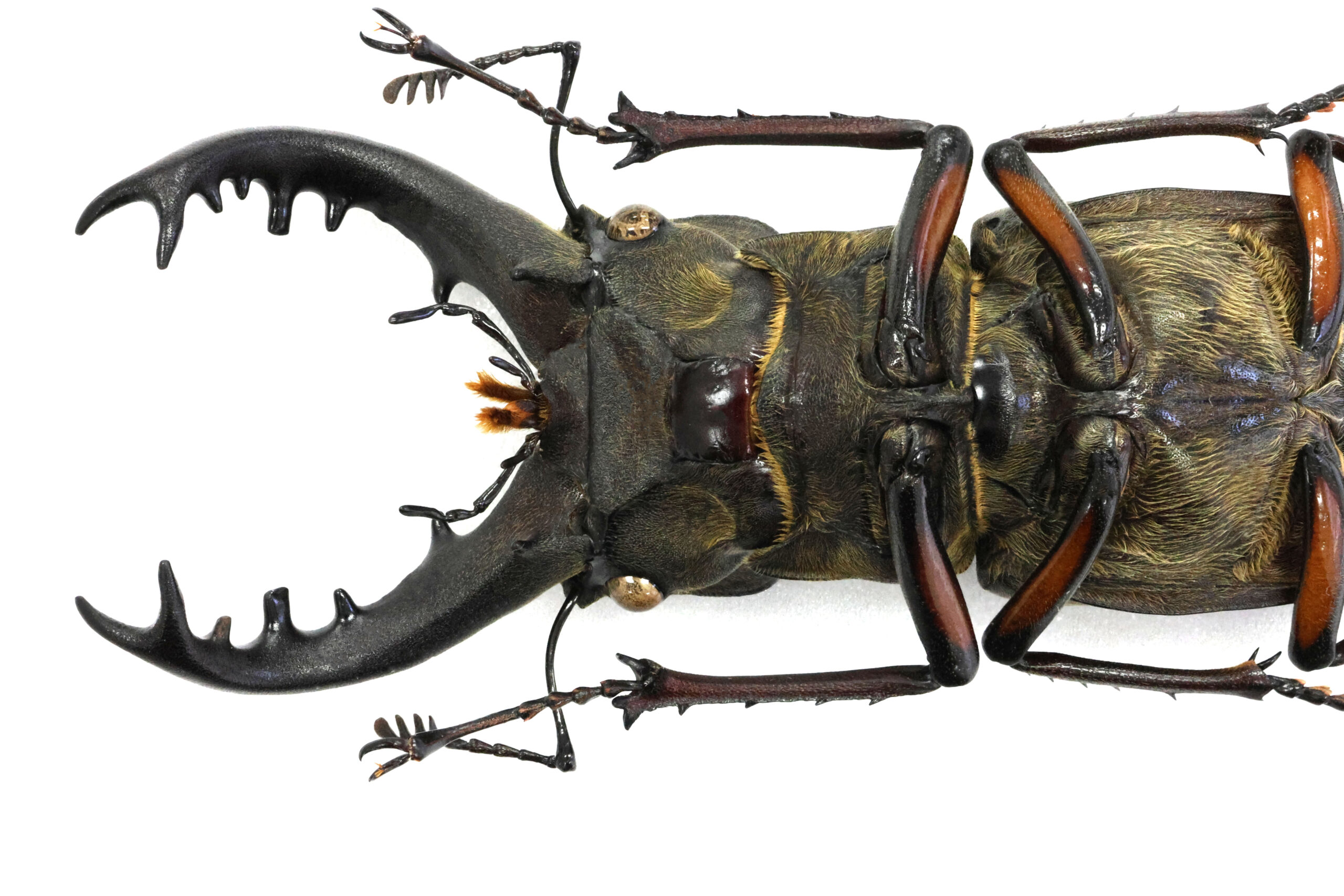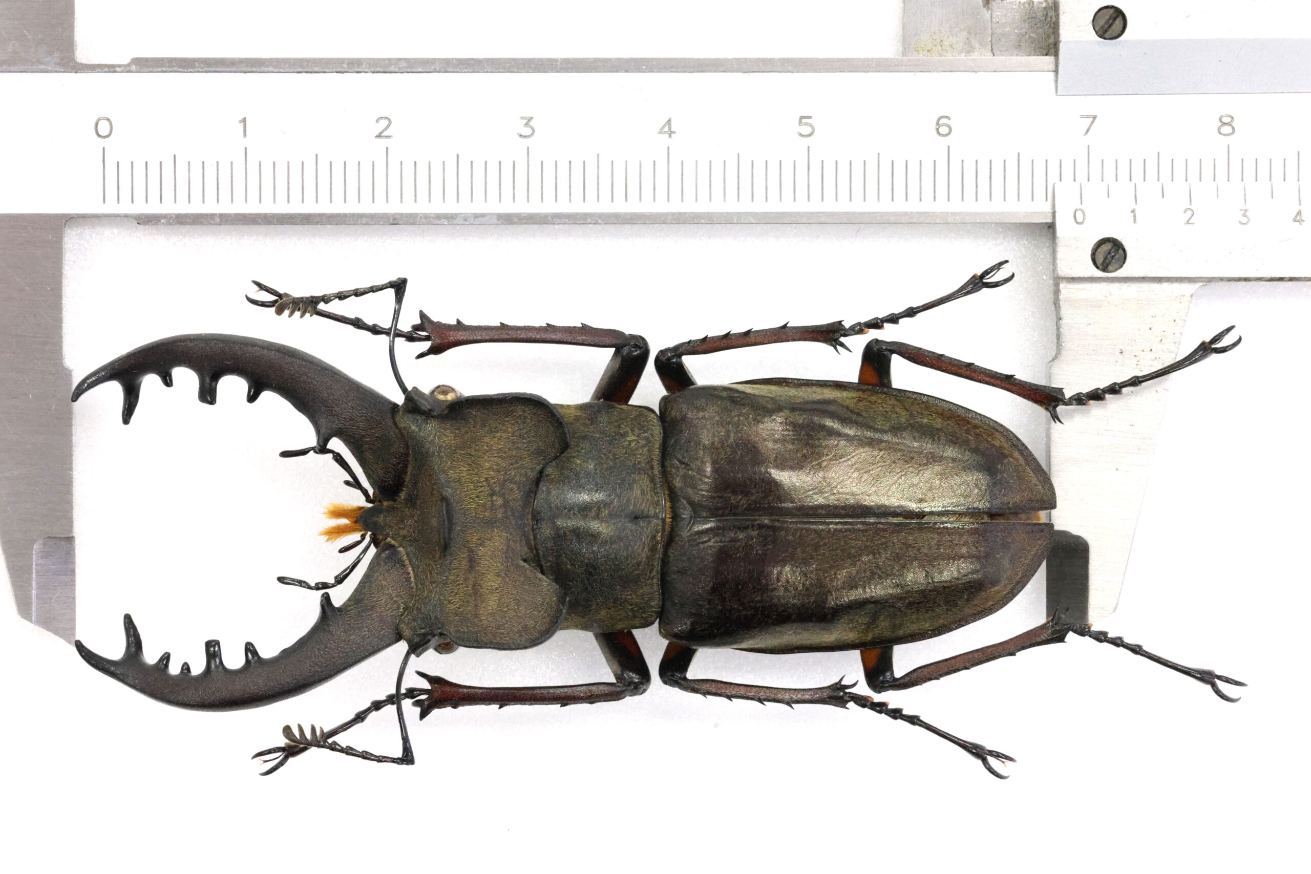 さて、Nさんが恐怖と戦いながら採集された本個体をじっくり見てください。この地の最大クラスと思われます。アゴ先の二股の広がりが美しいエゾ型フォルムですね。耳状突起の張り出しも素敵でございます。