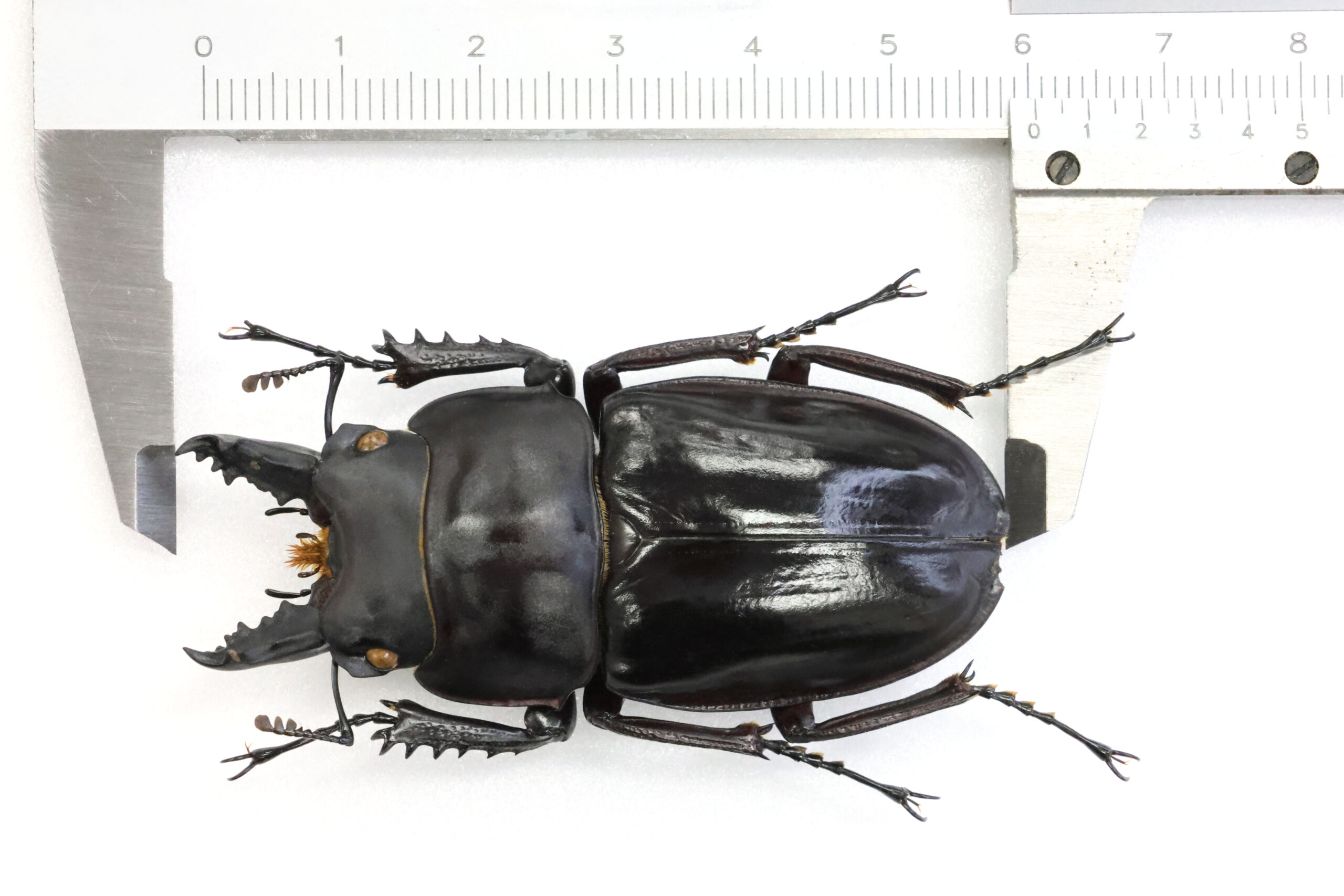 奄美大島在住、奄美の山々を良く知るSさんが採集された特大個体になります。地元の方でも、60ミリOVERのアマミマルバネクワガタは滅多に採れない。夜間に尾根沿いのスダジイを何度も見て回るそうです。本個体を採集した山塊(鳥帽子岳)は、ここ数年、マルバネクワガタの密度が非常に高く、一晩に30頭以上確認できることもあったそうです。55ミリを超える大型個体もかなり採集できたのですが、数は採れても60ミリOVERとなると話は違います。60アップは年に1頭採れたらラッキーと言う感じだそうです。Sさんは、なんとこの年(2009年)に60ミリOVERを複数採集されています。