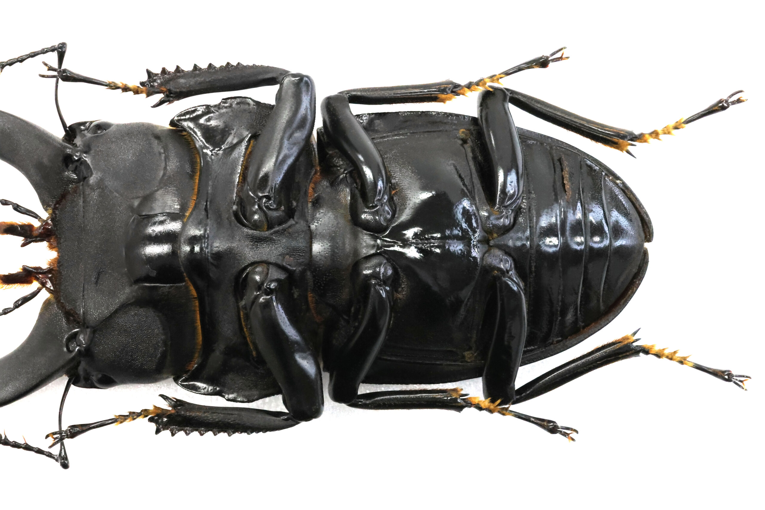 先に紹介した2頭よりさらに大きい…体の幅と厚みが凄いです。野外Guinness個体(70.1ミリ)より2ミリ以上も大きい超特大のスジブトヒラタクワガタになります。飼育個体でなければ、出会うことのないサイズかと思います。私自身も3~4センチ台のスジブトヒラタをたくさん見てきましたので、本個体はまったく異次元のサイズ感です。