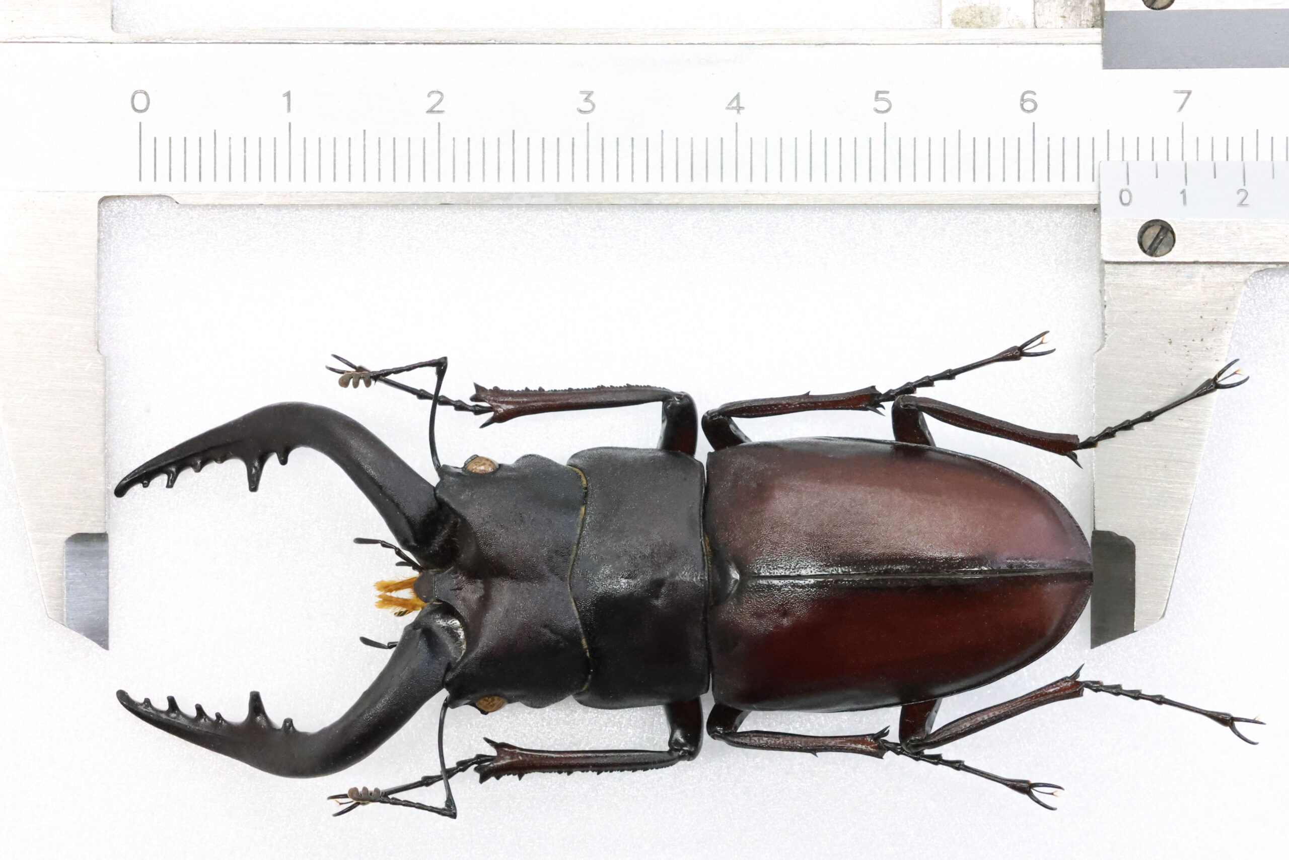 さて、本個体は、私の所持するノコギリクワガタの中で最北の個体になります。どちらかというと暖かい気候を好むノコギリクワガタにとって、オホーツクは決して住みやすい環境ではないでしょう。そのような厳しい生育環境で育った貴重なサイズになります。体幅がしっかりあるためか、パッと見ると大きく見えます。